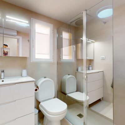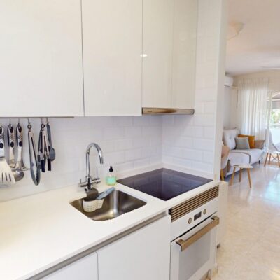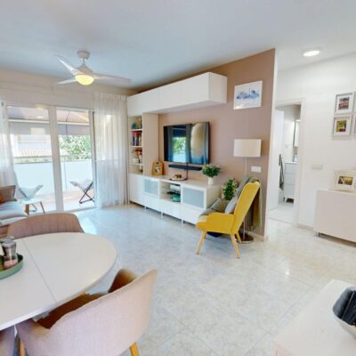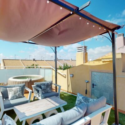 This is a beautifully presented apartment and has a good sized bright lounge with patio doors that lead to the terrace which has an awning to give some shade. The kitchen is open plan and there is a door which leads to the utility area and there is a spiral staircase taking you up to the roof solarium which has a hot tub, a pergola and storage. There are two double bedroom with fitted wardrobes and a family bathroom that has been renovated and now has a modern walk in shower.