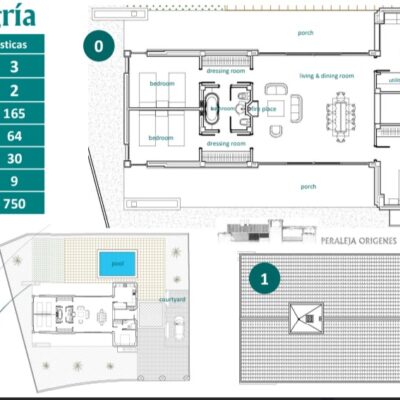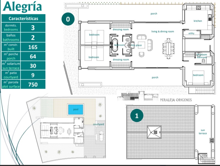 The villa offers a master bedroom with en-suite, two further bedrooms with walk-through wardrobes and shared bathroom, a spacious living room with doors opening to the covered porch, contemporary kitchen with tile choices and utility room. The living space can be opened both sides to bring the garden into the living room.