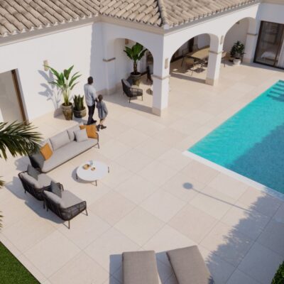 These villas blend timeless Mediterranean architecture with a sleek, ultra-modern interior finish. Set on spacious 500 m² plots, each villa offers 3 ensuite bedrooms, expansive terraces, and a large private pool. With a classic Mediterranean exterior and a strikingly modern interior design, these homes deliver the best of both worlds.