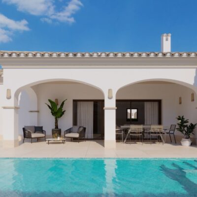 SPECIAL OFFER – 20.000 EURO FURNITUE VOUCHER if you purchase one of these beautiful villas from us. These mediterranean style new build three bedroom four bathroom villas are located in an ideal spot in the heart of San Pedro de Pinatar and just 5 minutes walk to the beach. In San Pedro you have some superb restaurants Like Venezuela and Rubio 360 and these are also just a short walk.
