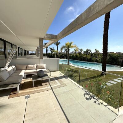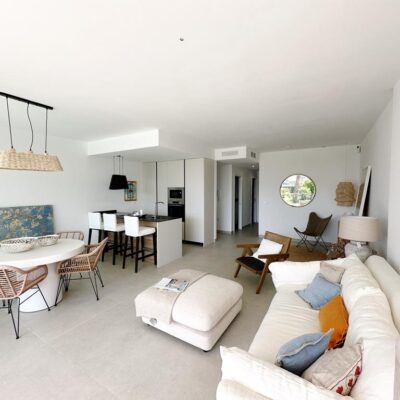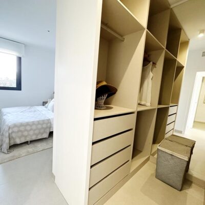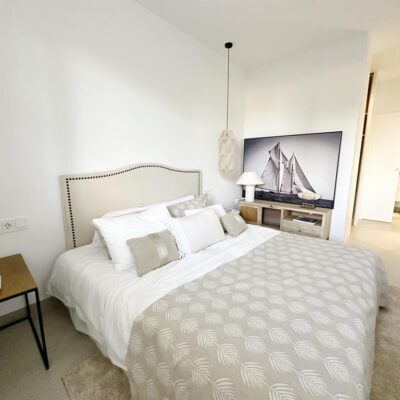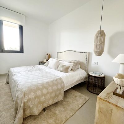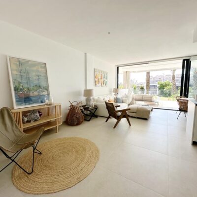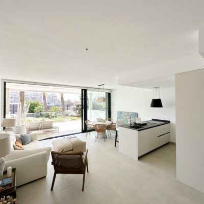 These ground floor apartments offer spacious indoor and outdoor spaces. On entering the property you will find a large open plan living dining kitchen with an island and white goods included. There are large patio doors that lead onto the terrace that overlooks the communal gardens and inviting communal pool. There is a useful utility room, two double bedrooms with fitted wardrobes, a family bathroom and the master bedroom has an ensuite bathroom and a walk in wardrobe. These properties come with underground parking and a storeroom ideal for keeping your bikes and beach stuff. There is availability on all floors and the higher floors have sea views. Contact us to arrange to see the show apartments of this fabulous development.