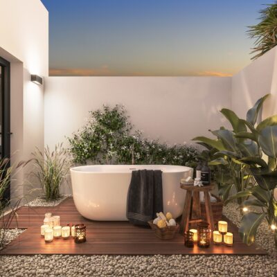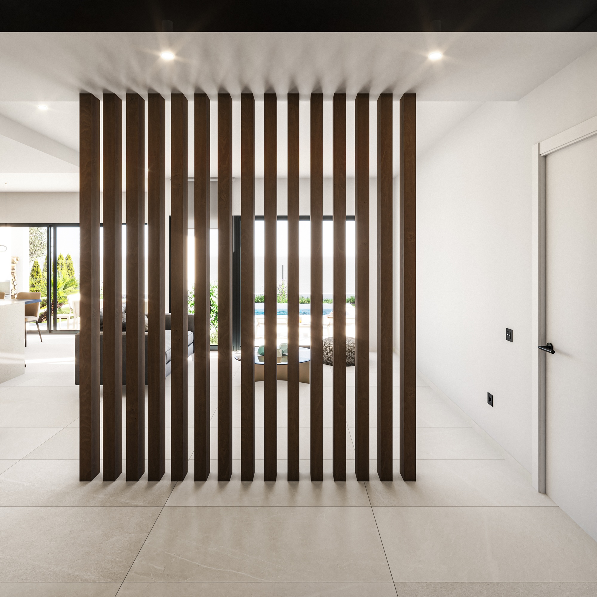 On entering the villa there is a hall way with a guest WC to the right and a useful cupboard. The lounge diner is spacious with just over 43m2 of usable space and filled with light as there are two large patio doors leading to the garden. The kitchen is also a generous size with an island. There are two rear double bedrooms with fitted wardrobes and doors to the front garden. The family bathroom is located next to these bedrooms. The master bedroom wing is impressive with patio doors to the garden, a walk through wardrobe, shower room that has a door to an inner courtyard which has been designed to be a Japanese garden with a huge outdoor bath. The back garden ha a terrace area, astro turfed area and a 21m2 swimming pool and boasts views over the golf and lake. To the front of the property is a driveway for your car. From the dining room stairs go down to an enormous 152m2 underbuild which could be a cinema room, a gym, further bedrooms, more storage the options for this space is endless. Contact us for more information