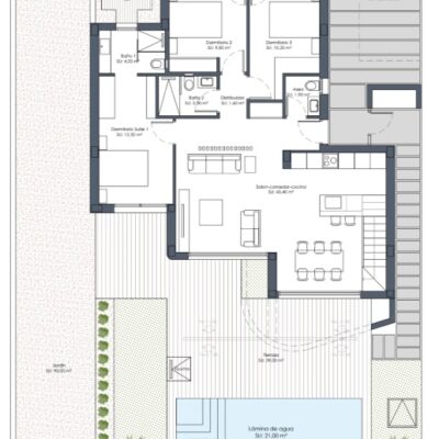 We think these FRONTLINE three bedroom villas have the WOW factor, located on La Serena Golf Resort and just a 30 minute walk to the beach. La Serena Golf is ideally located as its right next door to Los Alcazares so these properties are close to amenities and some great bars and restaurants like La Tropical, Ramones and Encarnacion.