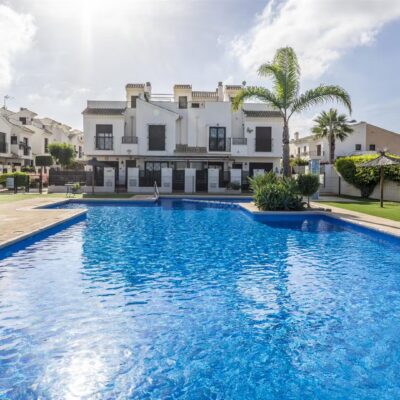 We are excited to offer this beautiful three bedroom three bathroom semidetached villa in the charming town of San Cayetano with a couple of supermarkets, a fantastic restaurant Rincon de Joaquin, several bars, a community centre, tobacconist, bank and vets. A bus runs to both Santiago de la Ribera and Lo Pagan. Balsicas train station, is a 5 minutes drive with with routes to Madrid, Murcia and Cartagena. Murcia City and airport is a 20 minute drive and the beaches of the Mar Menor a 15 minutes drive. This is a fantastic property in a really lovely community with a community pool.