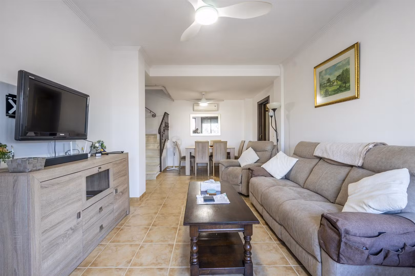 We are excited to offer this beautiful three bedroom three bathroom semidetached villa in the charming town of San Cayetano with a couple of supermarkets, a fantastic restaurant Rincon de Joaquin, several bars, a community centre, tobacconist, bank and vets. A bus runs to both Santiago de la Ribera and Lo Pagan. Balsicas train station, is a 5 minutes drive with with routes to Madrid, Murcia and Cartagena. Murcia City and airport is a 20 minute drive and the beaches of the Mar Menor a 15 minutes drive. This is a fantastic property in a really lovely community with a community pool.