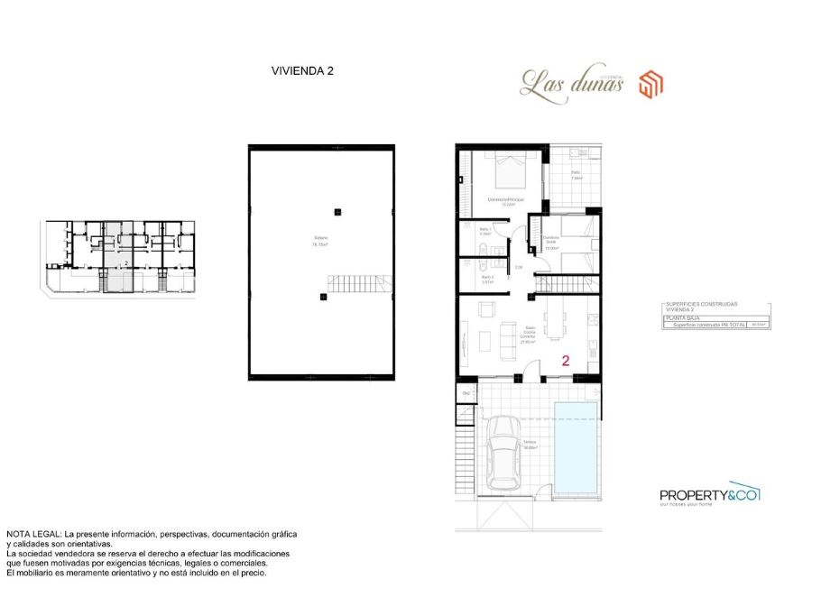 As you enter the property there is the lounge with an open plan kitchen with an island, patio doors lead out onto the terraced garden with private pool and there is space for your car too. Moving through the apartment there is a family bathroom and two double bedrooms with fitted wardrobes and the master bedroom has its own ensuite. Both bedrooms have patio doors to a private walled patio area. To top it all off they have their own 78m2 underbuild accessed down stairs behind the kitchen. These apartments come with white goods excluding the washing machine, Leds and preinstallation for vented AC.