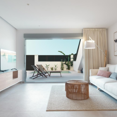 SPECIAL OFFERS APPLY – contact us for more information. Check out these stylish modern three bedroom two bathroom penthouse with roof solarium located in San Pedro de Pinatar opposite a pretty park. Great position as close to lots of lovely bars and restaurants and all the amenities you could need. San Pedro has great transport links. The med beach is just a 25 minute walk up the walkway past the salt flat and flamingos and the mud baths and Mar Menor beaches are just a 30 min walk away.