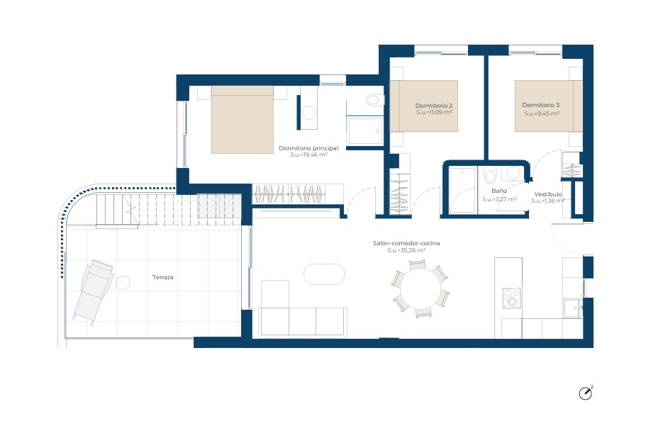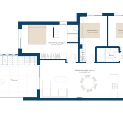 These apartments are finished to the highest standards, being constructed by a well established developer with a history of building excellent quality developments. This spacious apartment is located on the top floor and comes with an 84m solarium terrace facing South-West. There is a spacious living room with open plan kitchen (appliances included), master bedroom with en suite shower room, two further double bedrooms and family bathroom. There is a 19m terrace on this floor with steps leading to the solarium. The apartment comes with a parking space in the secure underground garage and a storeroom. Vented air conditioning is included with an option to upgrade to an Airzone climate control system. These apartments also have video-phone entry systems.