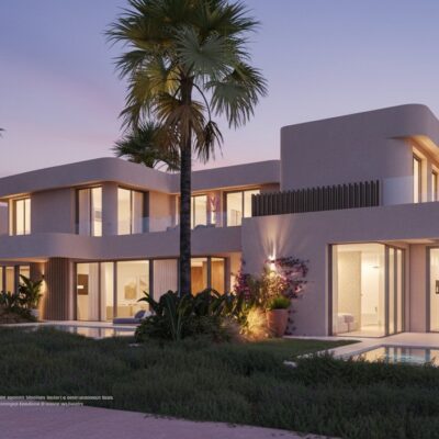 These villas are finished to the highest standards, being constructed by a well established developer with a history of building excellent quality developments. This South-West facing villa offers accommodation over two storeys with one bedroom being on the ground floor. On the ground floor there is a spacious living room with open plan kitchen (appliances included), master bedroom with en suite shower room and a downstairs WC. On the first floor there are two further double bedrooms and a family bathroom. The villas benefit from private swimming pools in the rear gardens. Vented air conditioning is included with an option to upgrade to an Airzone climate control system. These apartments also have video-phone entry systems.