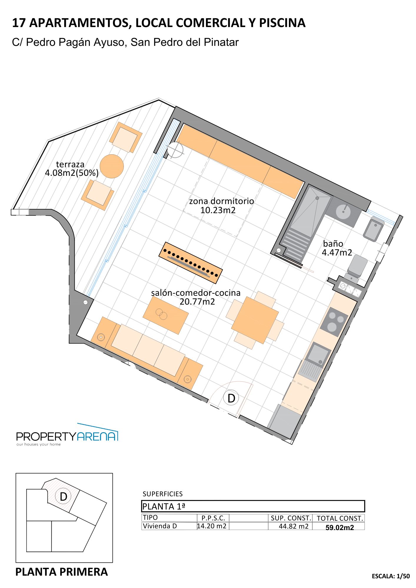 We are excited to offer these great value new build studio apartments, which are touristic apartments, so they must be on the rental market but you can enjoy holidays in your apartment too. They come ready to use with furniture, AC with heat pump, white goods and even down to things like pots and pans! Located just 700m to the beach in San Pedro de Pinatar we think these are a great buy. They are only a 24 minutes walk to Dos Mares shopping mall.