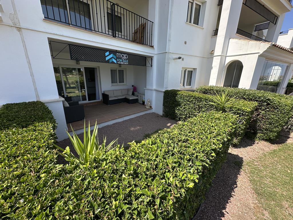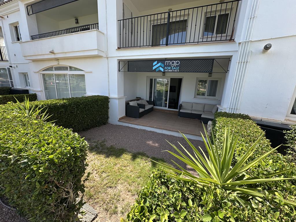 We are pleased to exclusively offer this wonderful south facing ground floor apartment for sale on the gorgeous Hacienda Riquelme Golf Resort. The property has two bedrooms and one recently renovated bathroom and has fantastic views over the golf course and is close to one of the resorts communal swimming pools. The property is being sold furnished and has gas central heating throughout, upgraded air conditioning throughout and comes with secure allocated underground parking with elevator access. The kitchen has a water filtration system. On site you have the wonderful El Cason restaurant, housed in the old Hacienda, a supermarket and cafe. Sucina village is 5 minutes drive with a whole host of great restaurants, a couple of supermarkets and banks.