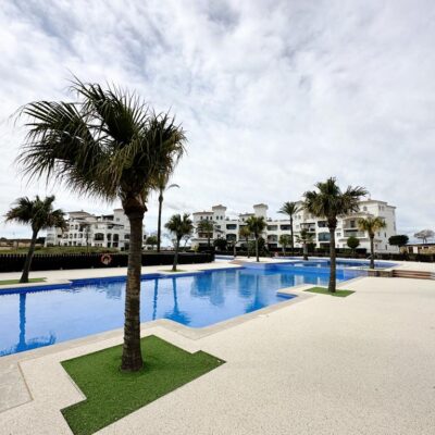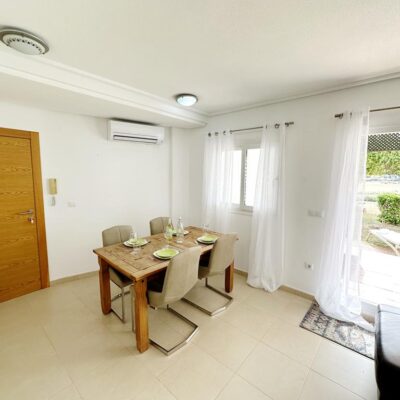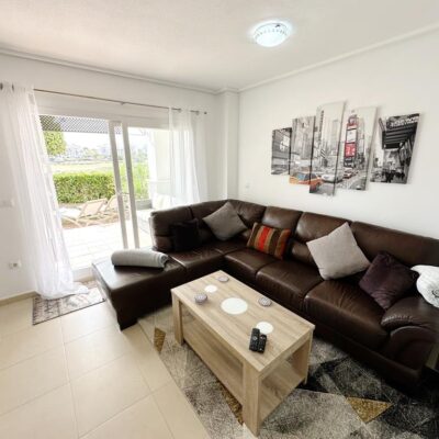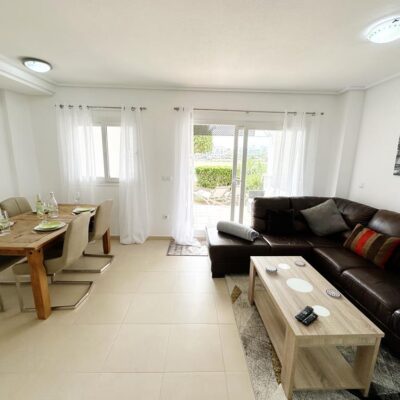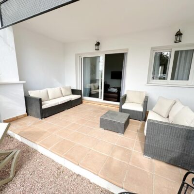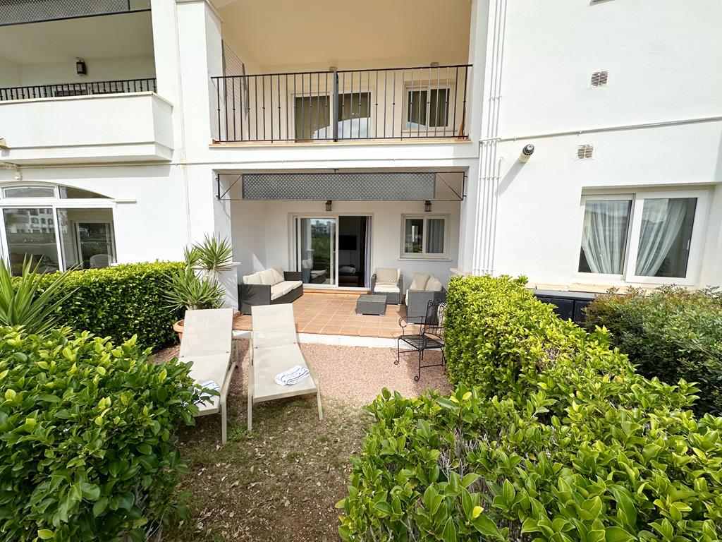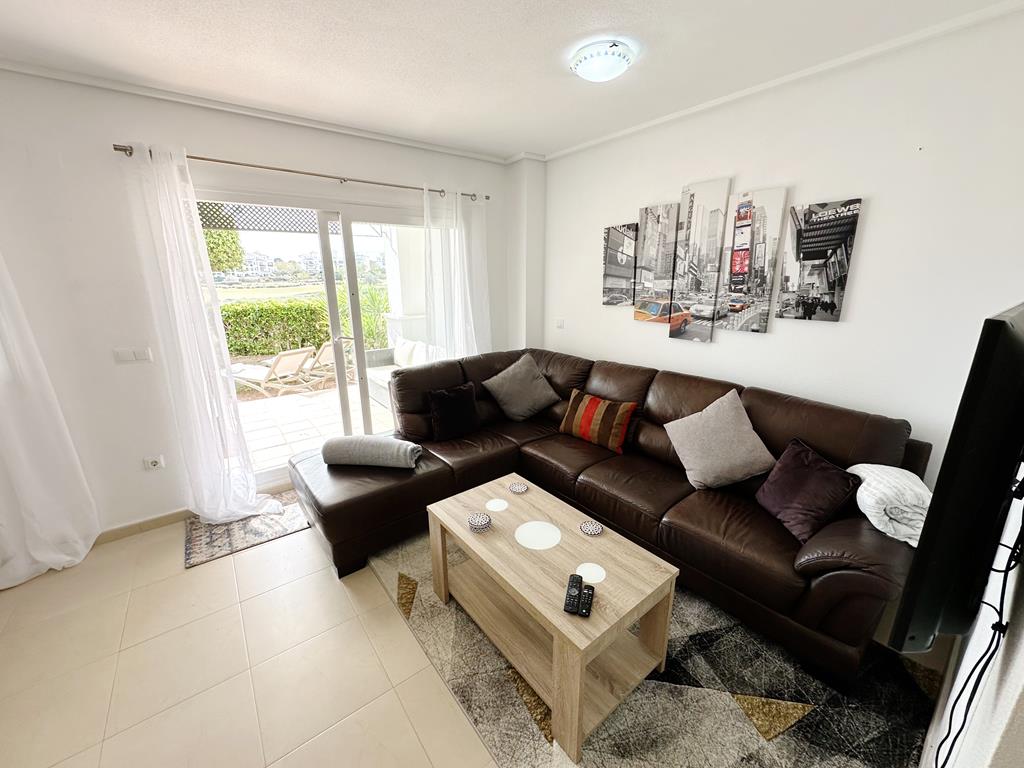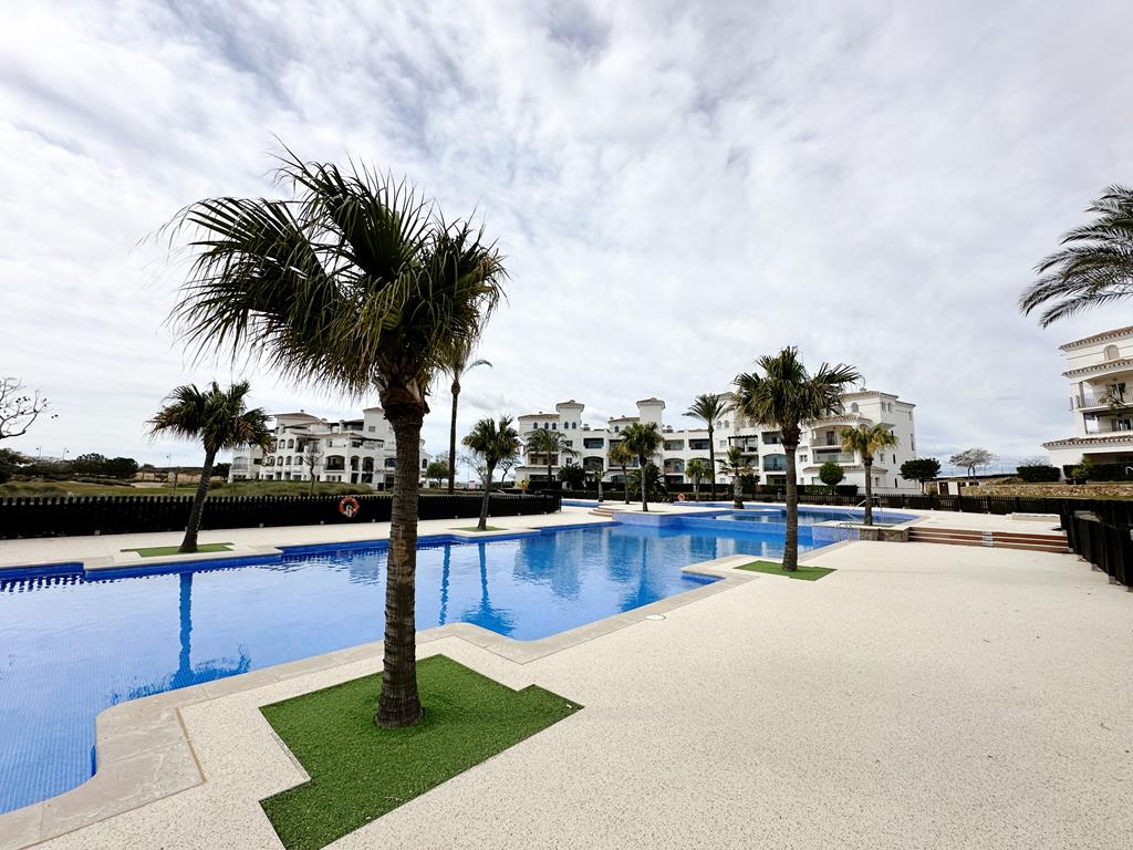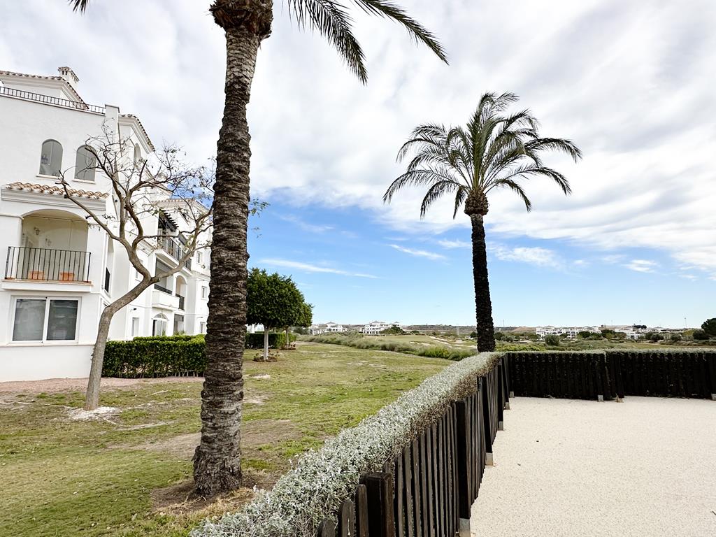 We are pleased to exclusively offer this wonderful south facing ground floor apartment for sale on the gorgeous Hacienda Riquelme Golf Resort.  The property has two bedrooms and one recently renovated bathroom and has fantastic views over the golf course and is close to one of the resorts communal swimming pools.  The property is being sold furnished and has gas central heating throughout, upgraded air conditioning throughout and comes with secure allocated underground parking with elevator access.  The kitchen has a water filtration system. On site you have the wonderful El Cason restaurant, housed in the old Hacienda, a supermarket and cafe.  Sucina village is 5 minutes drive with a whole host of great restaurants, a couple of supermarkets and banks.