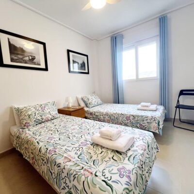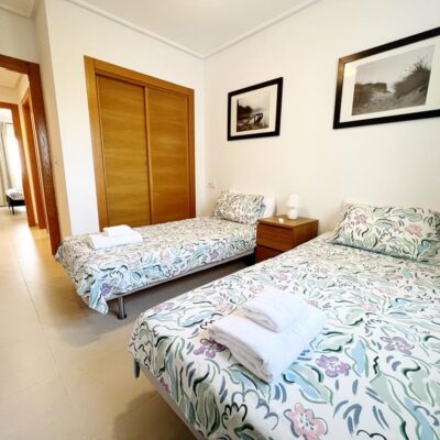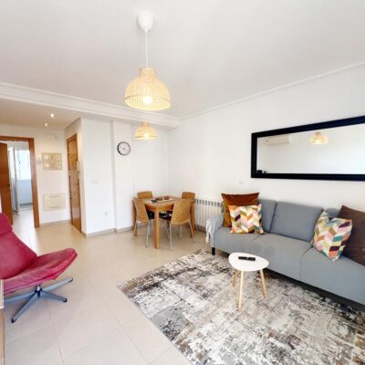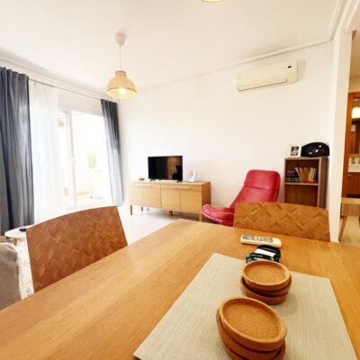 You enter the property into a spacious open plan living and dining room with patio doors access to the tiled terrace. The terrace has plenty of space for eating and relaxing where you can enjoy some amazing sunsets over the resort and views down to the Mar Menor. There is a modern kitchen with all mod cons and a separate utility / storage area. There are two double bedrooms both with fitted wardrobes, the master has direct access to the sunny terrace, and a separate family bathroom. This is a very well presented and maintained second floor apartment. Please contact us now to book a viewing appointment.