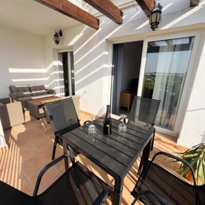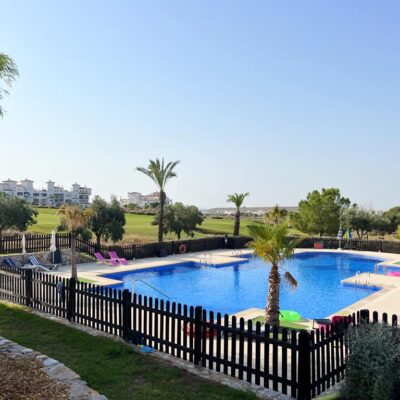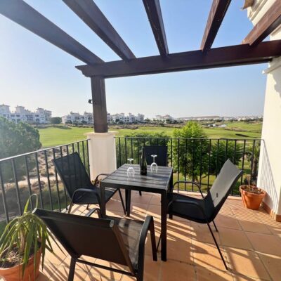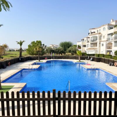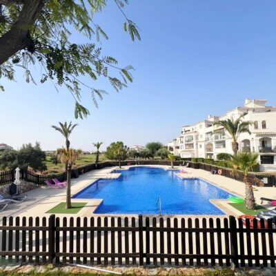 We are pleased to present for sale this fantastic south facing second floor apartment on the gorgeous Hacienda Riquelme Golf Resort. The property is being sold furnished, aircon in the lounge, gas central heating throughout and secure allocated underground parking with lift access to the property. It is in a great location on the resort, close to the clubhouse and with wonderful views over the golf course, lake and one of the resorts communal swimming pools.