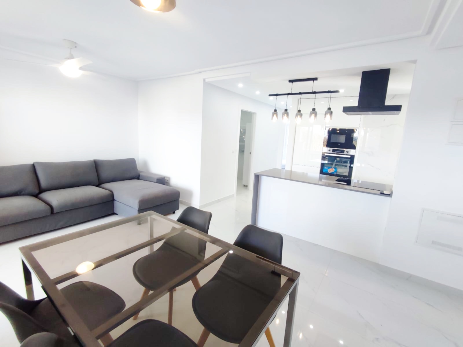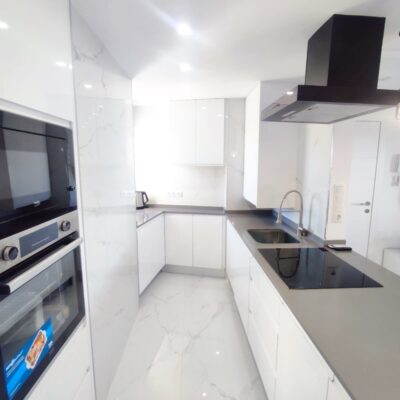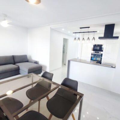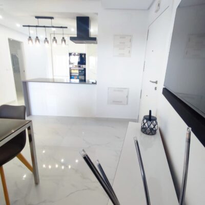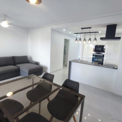 In entering this apartment its been totally transformed and the lounge is now open plan to the kitchen which has has a new worktop and cupboards installed. The lounge has patio doors to the terrace which has views over the pool and onto the golf. There are two double bedrooms with fitted wardrobes and a stunning family bathroom. This property has new flooring, new AC and is being sold furnished. There is underground parking included and lift access to all floors. Contact us now to book a viewing appointment.