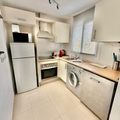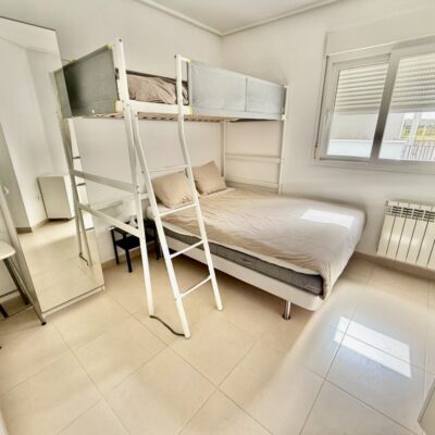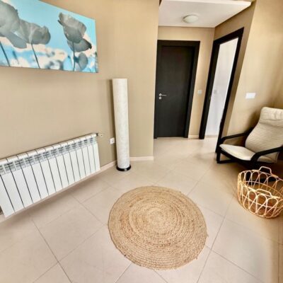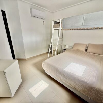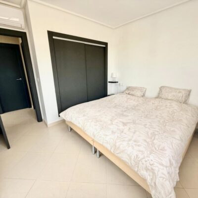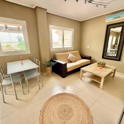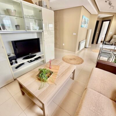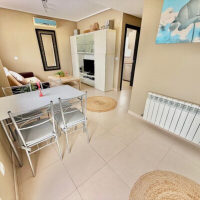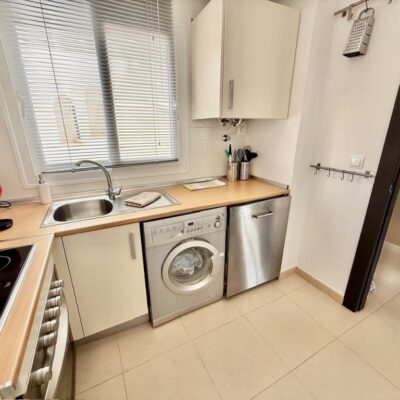 The apartment is offered for sale furnished and with air conditioning in both the living room and bedrooms. There is a living room with sliding doors opening to the covered terrace, fitted kitchen with appliances, two double bedrooms and a family bathroom. The apartment comes with a parking space in the secure underground garage which has a lift to all floors.