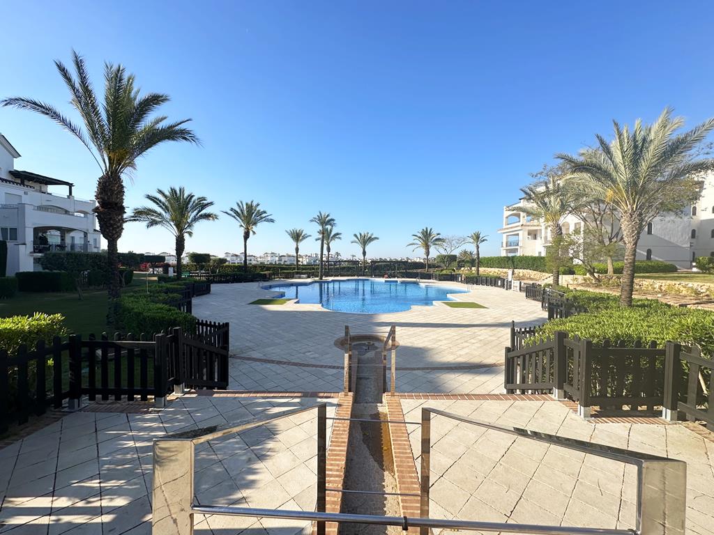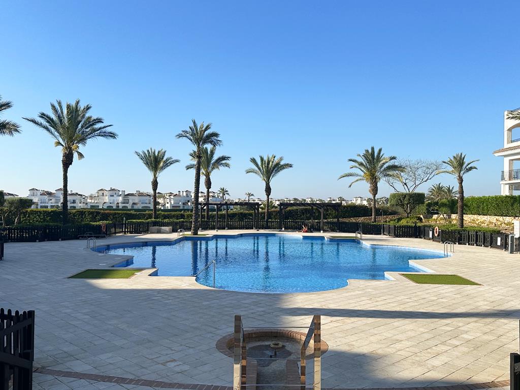 We are pleased to offer this superb ground floor apartment on the wonderful La Torre Golf Resort. The apartment is east facing and close to a large communal swimming pool. It is a two bedroom one bathroom property with gas central heating and allocated underground parking with lift access to the apartment. Onsite you have a supermarket and several fantastic bars and restaurants, all a short 8 minutes walk away. The town of Roldan is a 5 minutes drive with supermarkets, banks and restaurants and Murcia airport a 15 minutes drive.