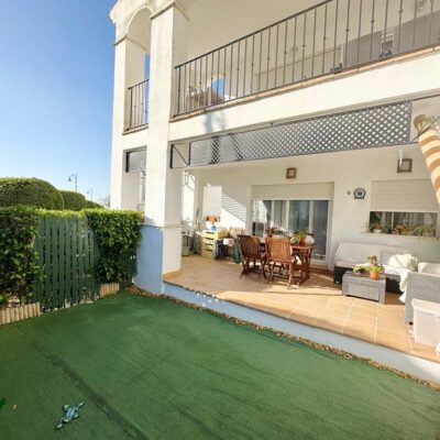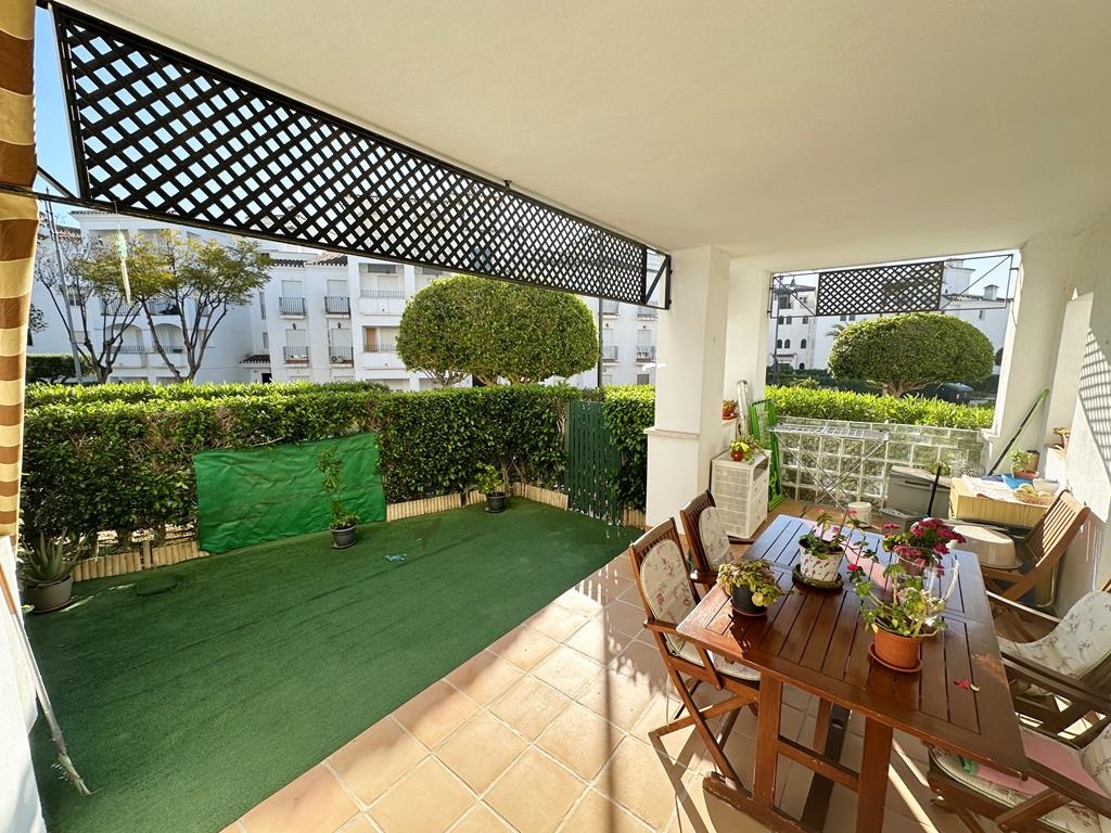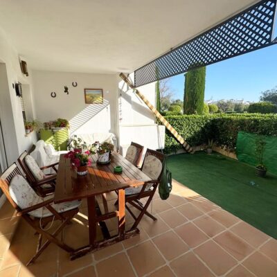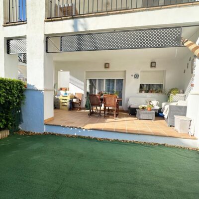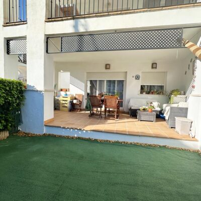 The apartment comprises a sunny lounge diner with patio door access to the covered tiled terrace and sunny astro-turfed garden. There is a spacious galley style kitchen, family bathroom with bath and over shower and two double bedrooms both with fitted wardrobes. A great property in a fantastic location. Contact us for a viewing.