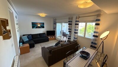 You enter the apartment into the sunny lounge diner with patio door access to the tiled covered terrace where you can enjoy wonderful golf and pool views with great sunsets. The galley style kitchen has all mod cons, the bathroom has been completely modernised with a walk in shower. There are two double bedrooms both with fitted wardrobes which enjoy beautiful views over the orange groves. Please contact us to book a viewing appointment.