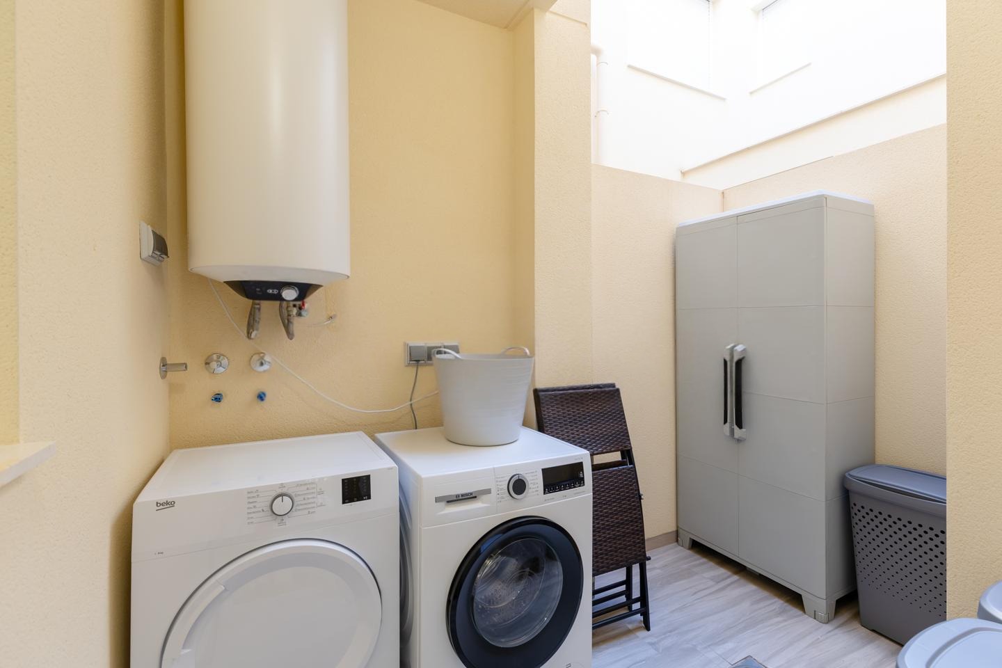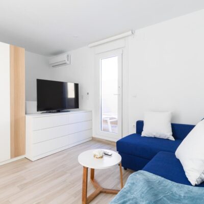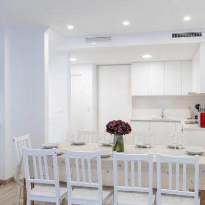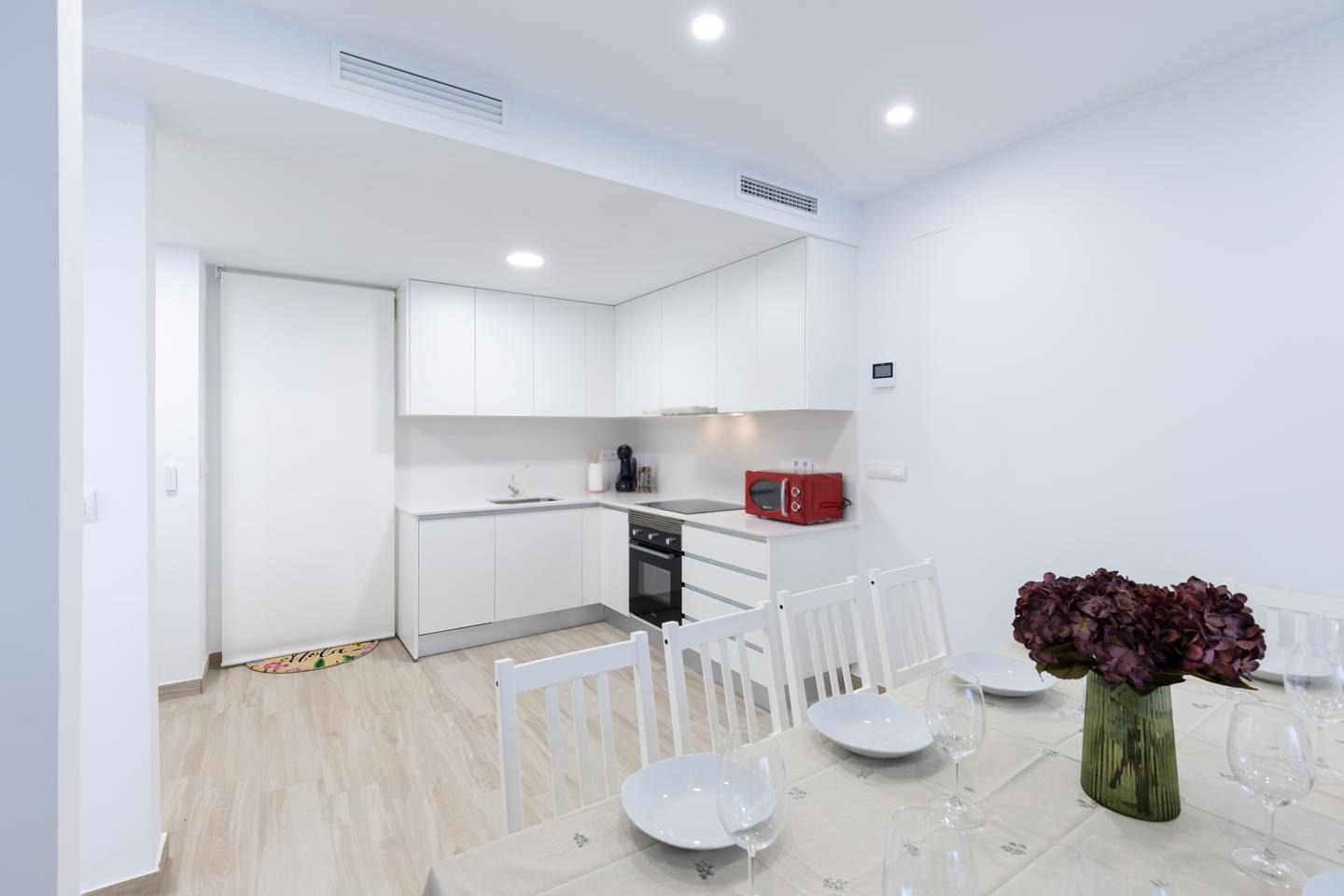 It also includes two full bathrooms, modern and fully equipped, finished with practical and tasteful materials, ideal for everyday holiday use. The living area is warm and inviting, with a generous lounge filled with natural light, perfect for relaxing after a day at the beach. The fully equipped kitchen is designed to meet all the needs of a holiday stay. There is a good sized terrace on the ground floor and an internal courtyard, upstairs there is a little terrace off one of the bedrooms and on the next floor there are two terraces. The property comes with underground parking.