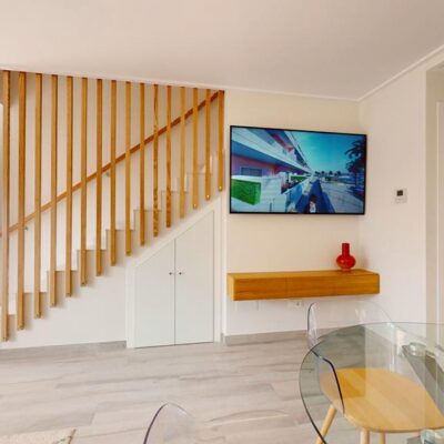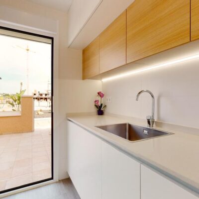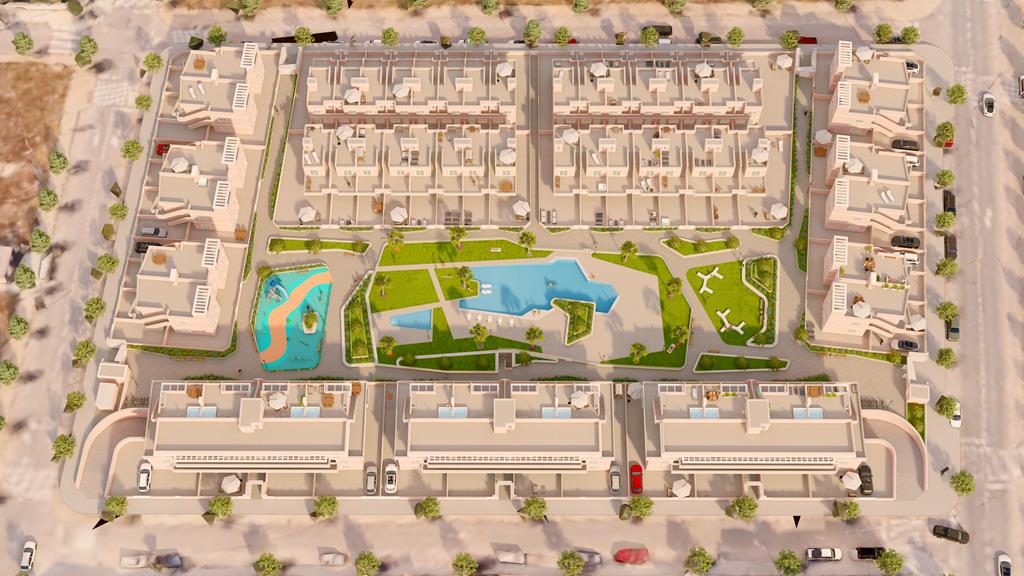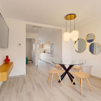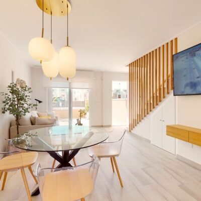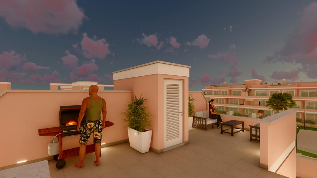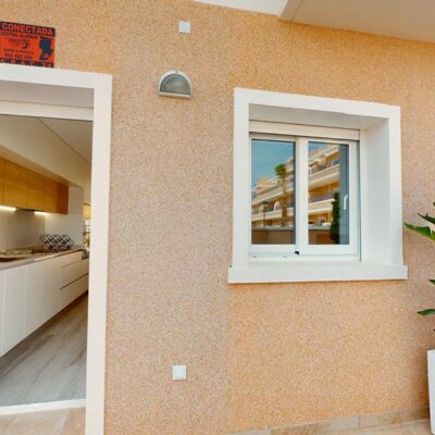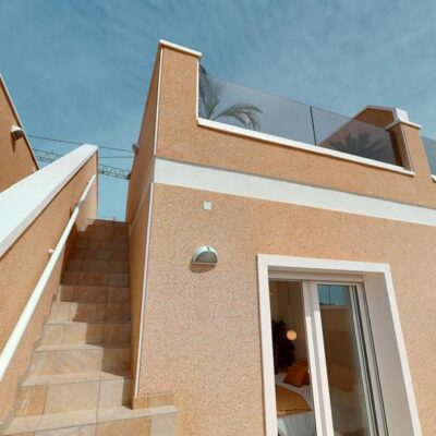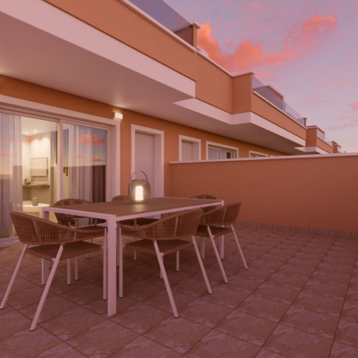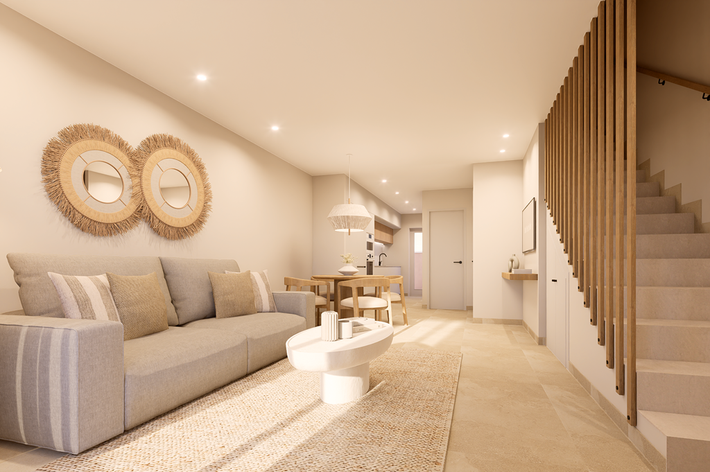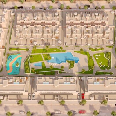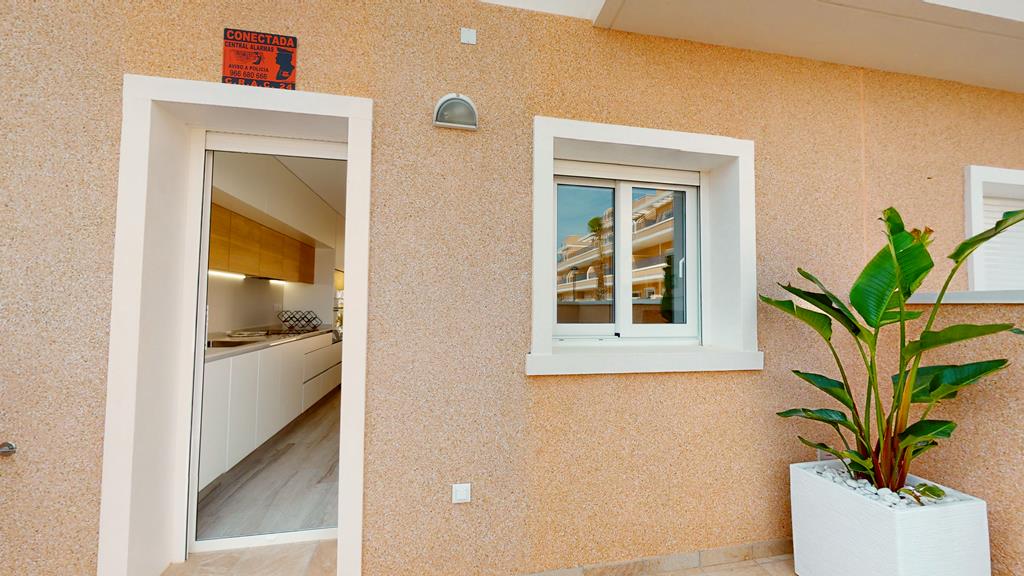 The first phase of townhouses will be ready October 2026. The property is laid out over three floors, the ground floor with open plan living kitchen and dining room, downstairs bedroom and separate guest shower room. There is a rear patio off the kitchen and downstairs bedroom. Stairs lead to a further two bedrooms both with fitted wardrobes and a separate family bathroom. There i access to a terrace off the master bedroom. A further flight of stairs lead to the 35m2 solarium when you can enjoy wonderful views. There is preinstallation for a summer kitchen on the solarium and aircon. One huge plus is that an underground parking space is included in the price. Completion is due October 2026. Contact us to book a viewing appointment.