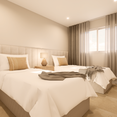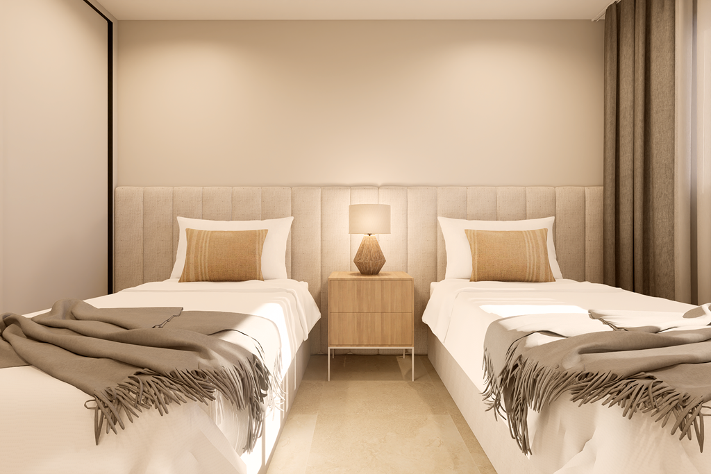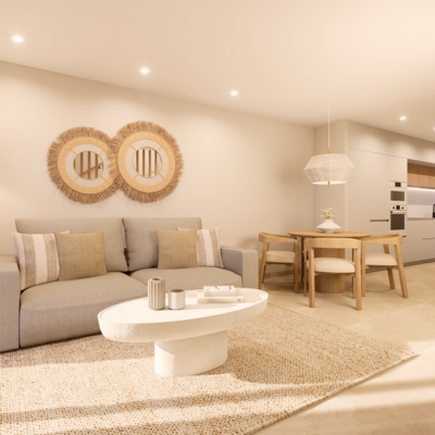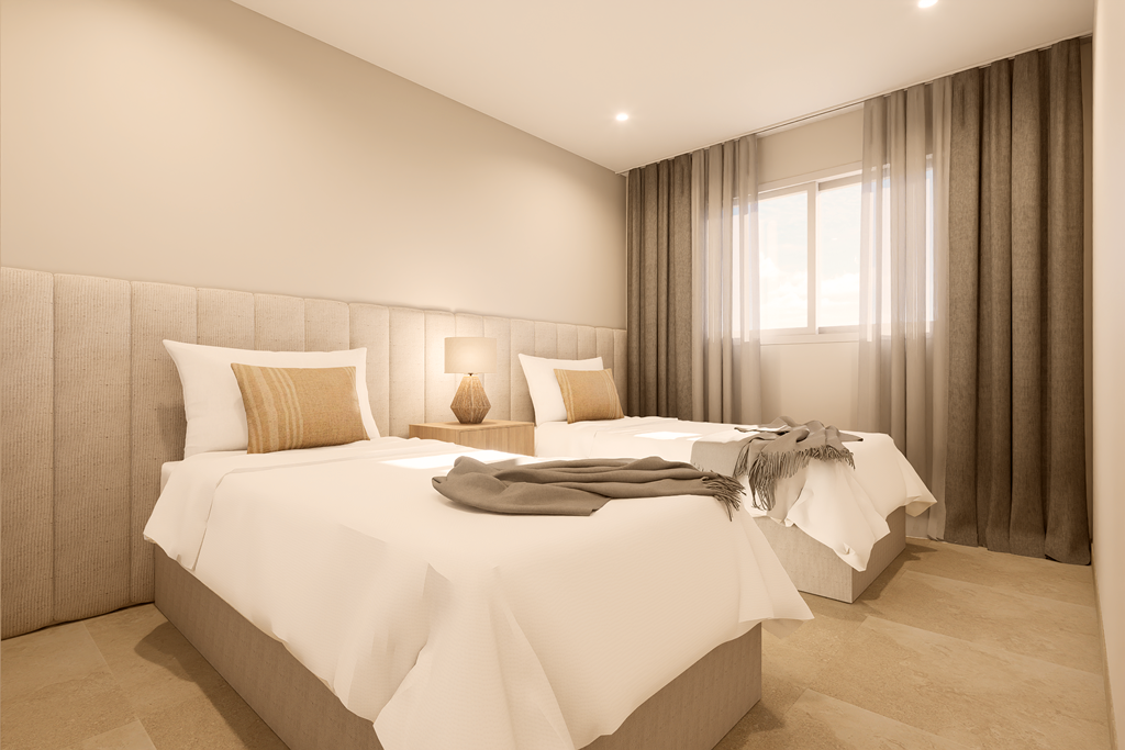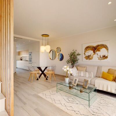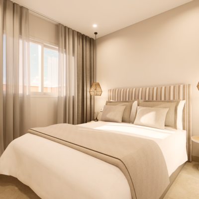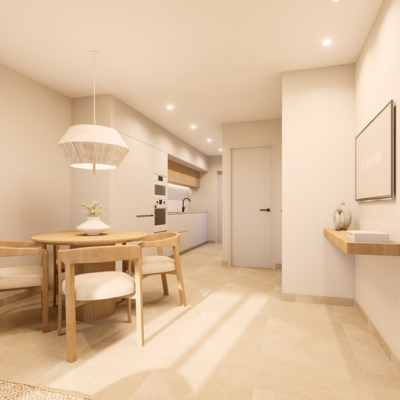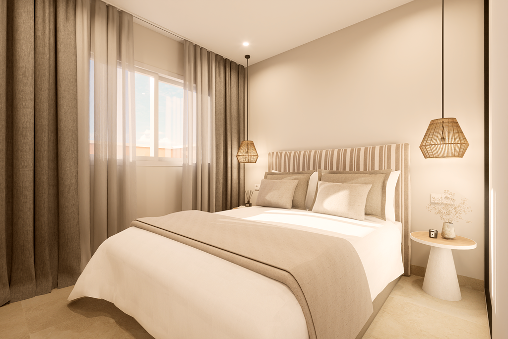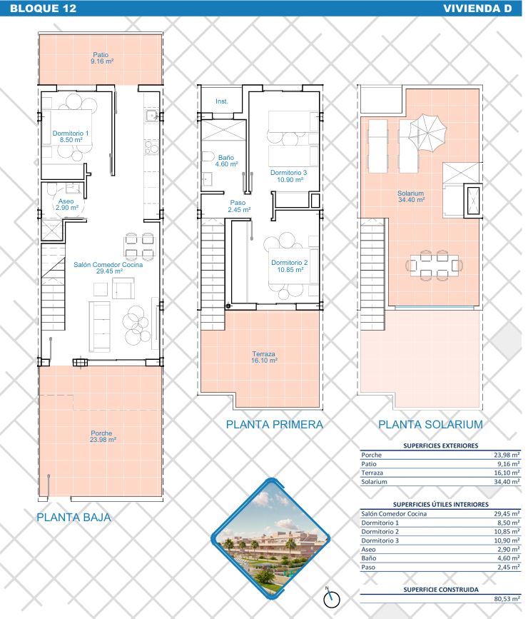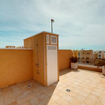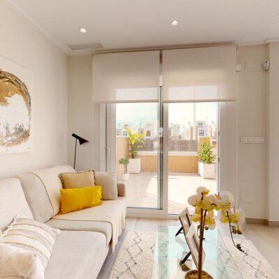 The first phase of townhouses will be ready October 2026. The property is laid out over three floors, the ground floor with open plan living kitchen and dining room, downstairs bedroom and separate guest shower room. There is a rear patio off the kitchen and downstairs bedroom. Stairs lead to a further two bedrooms both with fitted wardrobes and a separate family bathroom. There i access to a terrace off the master bedroom. A further flight of stairs lead to the 35m2 solarium when you can enjoy wonderful views. There is preinstallation for a summer kitchen on the solarium and aircon. One huge plus is that an underground parking space is included in the price. Completion is due October 2026. Contact us to book a viewing appointment.