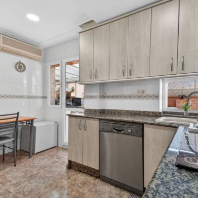 This property has a bright and airy lounge diner with two patio doors, the side patio doors goes onto a good sized terrace with awning. There is a separate kitchen which is a great size and fits another table. From the kitchen there is a door that leads to another terrace which the current owners have glazed in. Two generous bedrooms and two bathrooms. The property is sold unfurnished and the lounge and bedrooms have AC. Contact us to arrange to view.