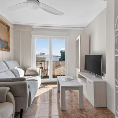 We are delighted to offer this middle floor spacious two bedroom two bathroom apartment with great outdoor space and sea views located just 100 metres to the beach in the charming town of Lo Pagan which has all the amenities you could need and lots of great restaurants and cafes. Rubio 360 and La Venezuela restaurants are a short stroll away.