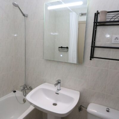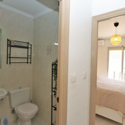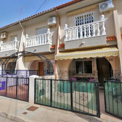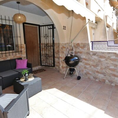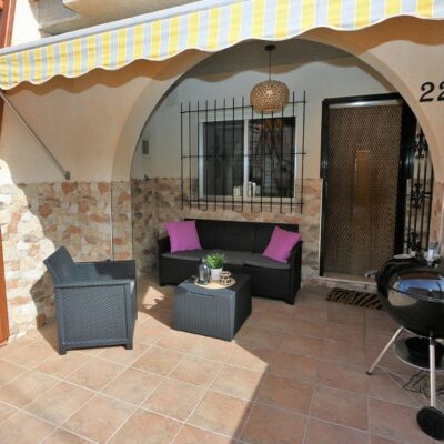 On entering the property there is a modern lounge which is stylishly furnished. The kitchen is separate and has a door to the rear patio where there is a modernised shower and toilet. Upstairs there are tow double bedrooms and a family bathroom. the master bedroom has patio doors to a little terrace. Outside on the ground floor to the front you have a covered terrace and a patio area which you can park your car on if you wish. It comes furnished with AC in lounge and bedrooms and also has two awnings.