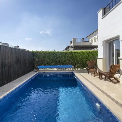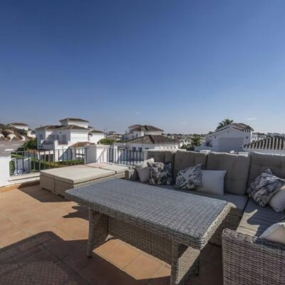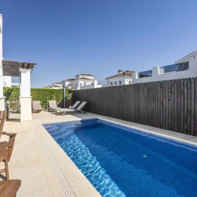 Location Location Location and this upgraded three bedroom two bathroom villa is in a superb location just a short stroll to the onsite supermarket, bars and restaurants on La Torre Golf Resort. This resort is located just 15 minutes drive to the airport and 20 mins drive to the nearest beach and Murcia city. The local towns of Roldan and Balsicas are just a 5 minute drive away.