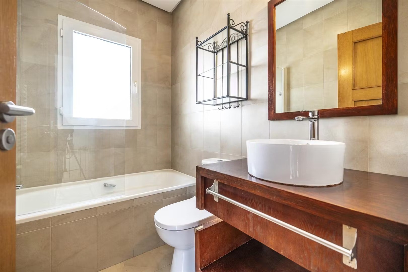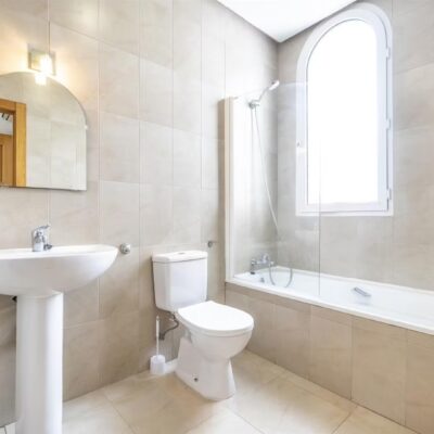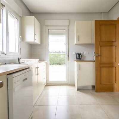 On entering the villa you will find a good sized lounge dining room with two patio doors to the garden which has a private swiiming pool and lawned garden. There is a pergola just outside the patio doors ideal for al fresco dining. The kitchen is a great size and has a separate utility room and a door to the garden. Downstairs there is a double bedroom with wardrobes, a family bathroom and useful understairs cupboard. Upstairs are two further double bedrooms with en suite bathrooms. The master bedroom has patio doors to a front terrace and then a larger terrace with views over the garden and pool.