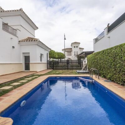 We are delighted to offer this sunny SOUTH facing three bedroom detached villa on La Torre Golf Resort. This resort is located just 15 minutes drive to the airport and 20 mins drive to the nearest beach and Murcia city. The local towns of Roldan and Balsicas are just a 5 minute drive away.