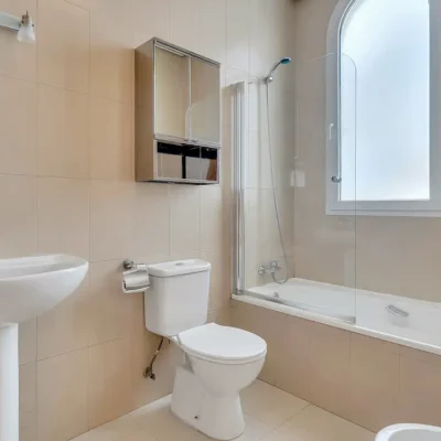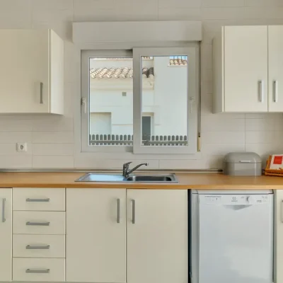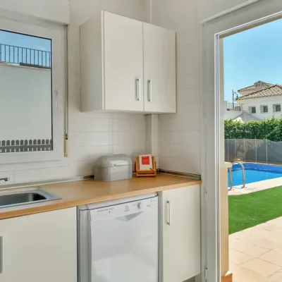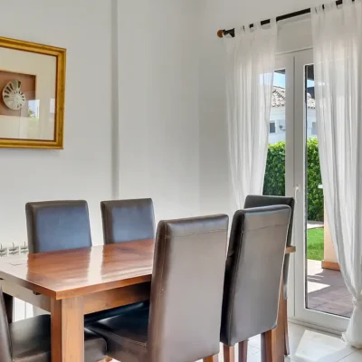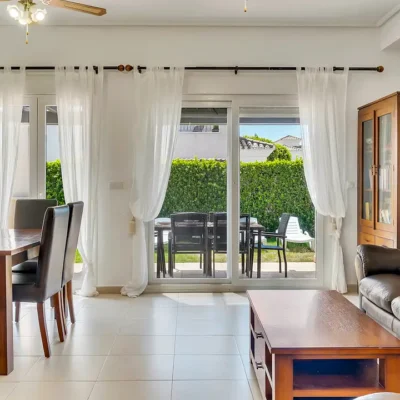 This lovely villa has a spacious living room with doors opening to the sunny rear garden, a fitted kitchen with appliances, a ground floor bedroom and bathroom. On the first floor there are two further double bedrooms, two bathrooms and two sun terraces. The villa has a driveway to the front and a wide South facing garden with a private swimming pool. Offered for sale furnished and with A/C, this could be a perfect permanent or holiday home. Contact us to arrange a viewing.