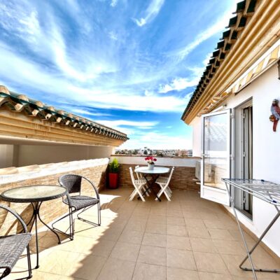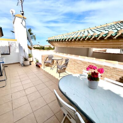 Location location location…this three bedroom two bathroom penthouse apartment has just that. Situated just a 15 minute walk to the beach and also only a 15 minute walk to La Zenia Boulevard shopping centre and has all the amenities you could need at your finger tips. There is also a public bus service to Torrevieja close by. The apartment is in an ideal location close to a variety of bars, restaurants and supermarkets. It is being sold furnished with aircon and has a communal swimming pool.