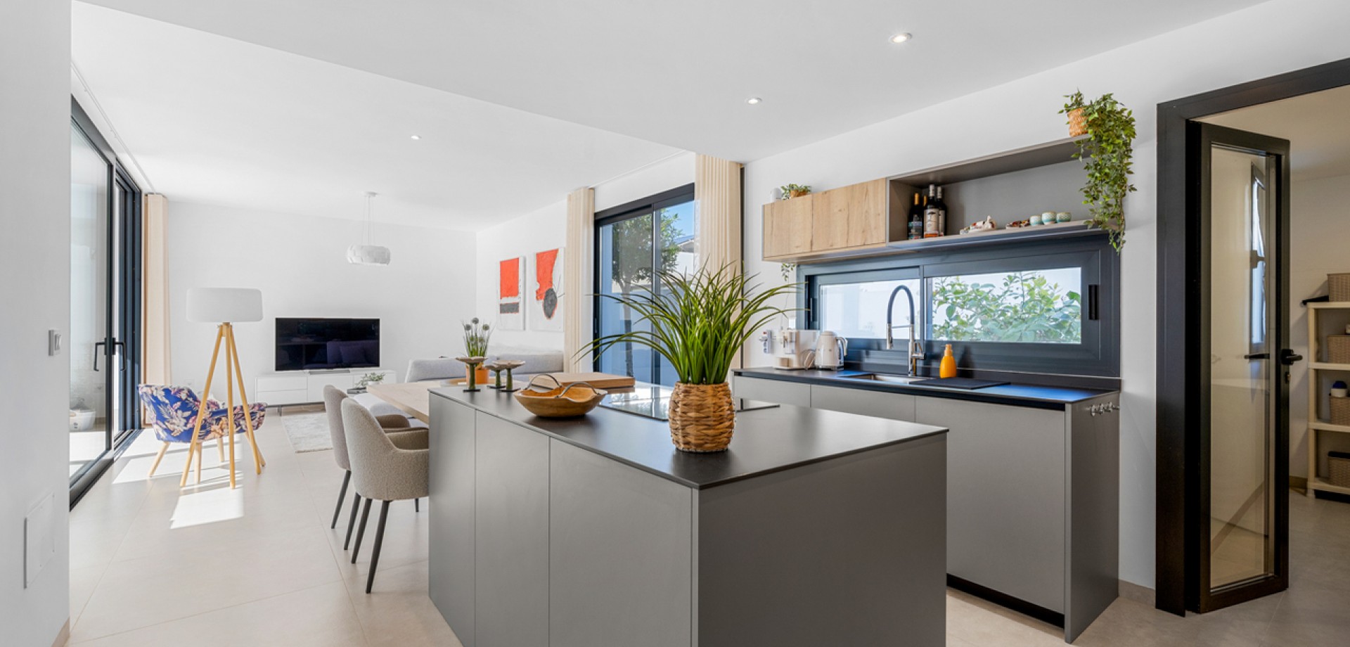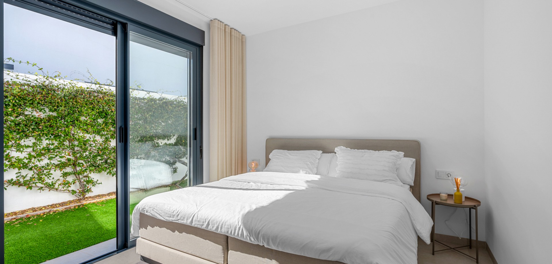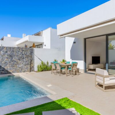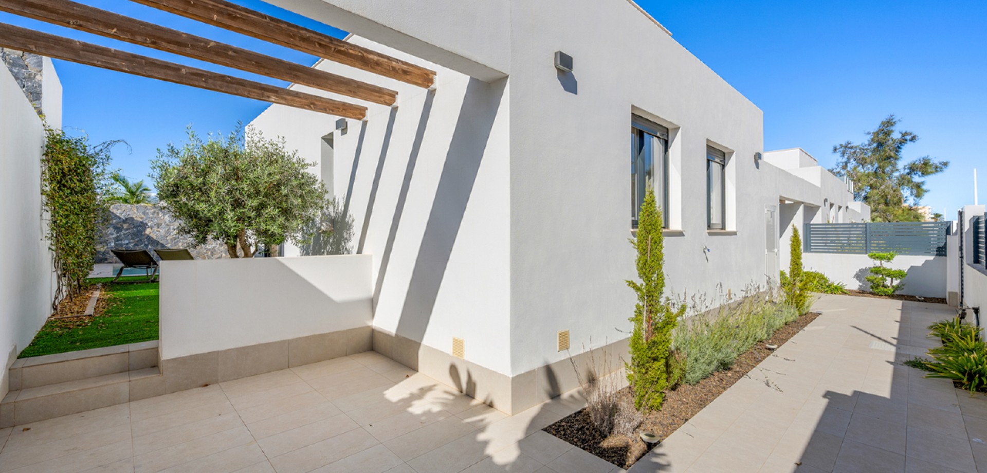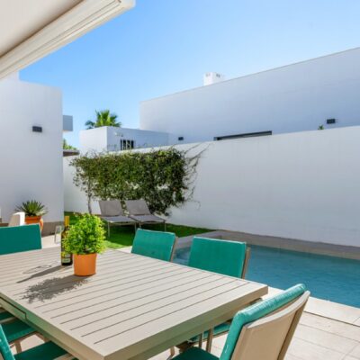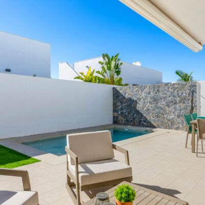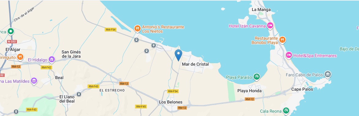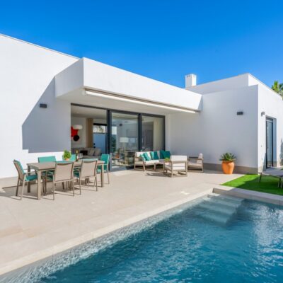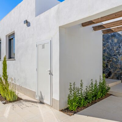 A lovely modern villa located just 400m from the sandy beach at Mar de Cristal. Nearby you will find restaurants, bars, sports facilities including padel and tennis, a marina, cafes and a sandy beach. The major town of Cartagena is a short drive away, La manga Club is within easy reach and the Calblanque nature reserve is very closeby.