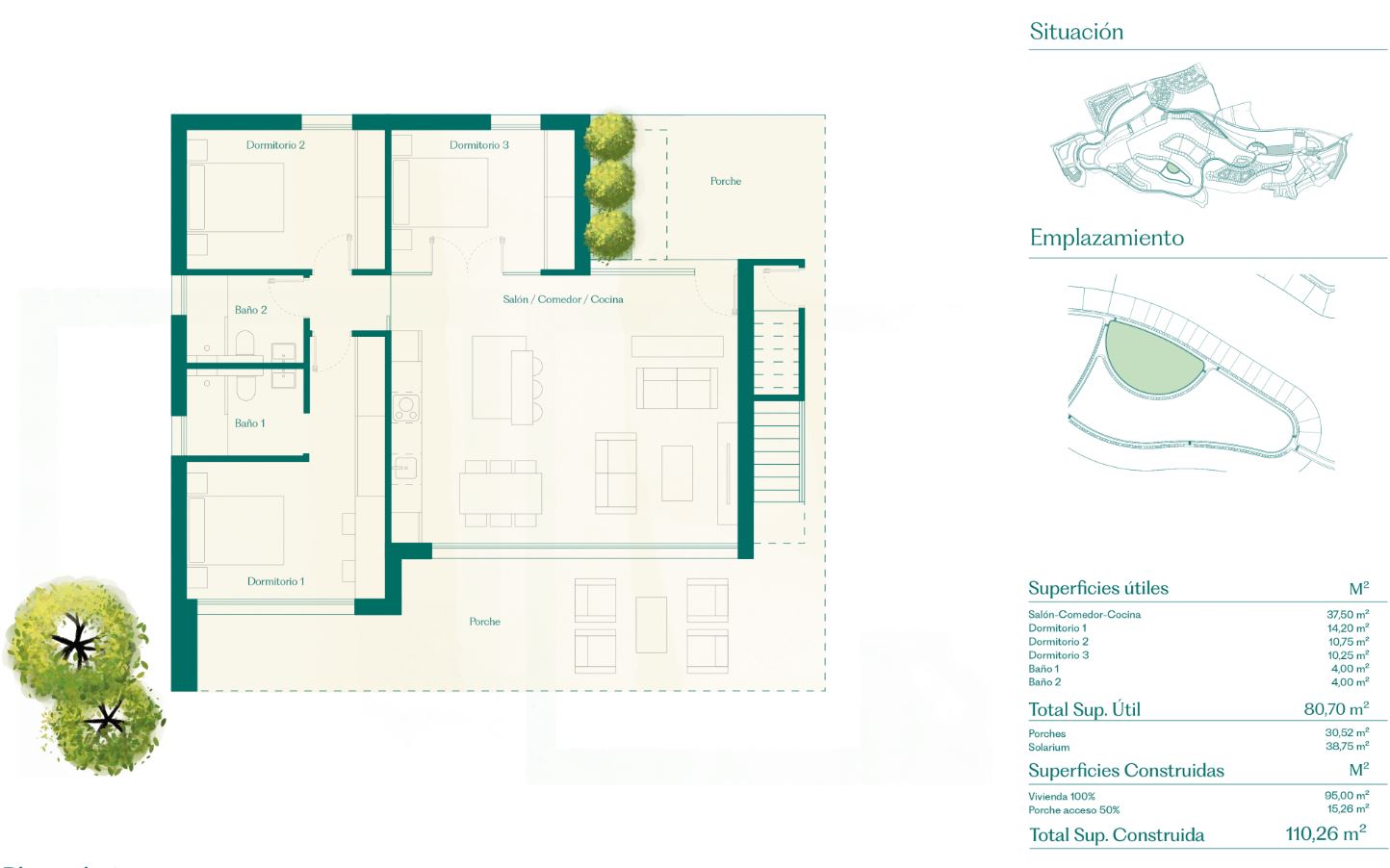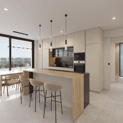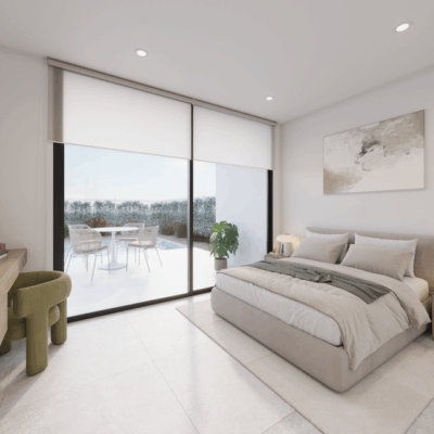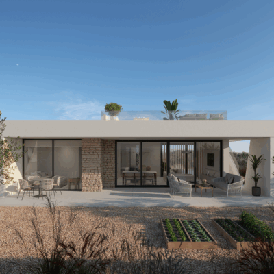 There is a generous open plan lounge diner kitchen with an island and lots of light as there are large patio doors to the terrace and garden and also another set of patio doors to the rear patio, there are three double bedrooms with fitted wardrobes, a family bathroom and the master bedroom has an ensuite and patio doors to the garden. Outside are the stairs that lead to a large roof solarium. They come with interior and exterior LEDS, white goods and preinstallation for vented AC. Ready third semester of 2026.