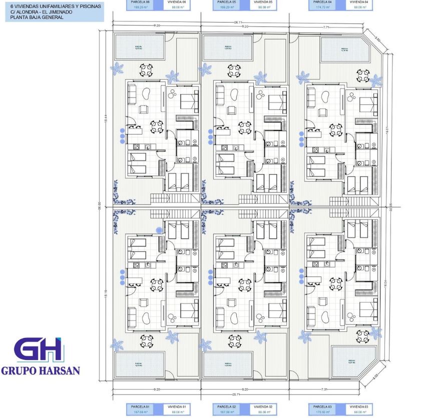 We are please to offer these single storey three bedroom two bathroom villas with private pools and roof solariums. Located in the village of El Jimenado which is just 20 minutes drive to the beach and 15 minutes drive to Murcia Airport. the villages has a few bars and restaurants, supermarket, pharmacy and a friday morning market