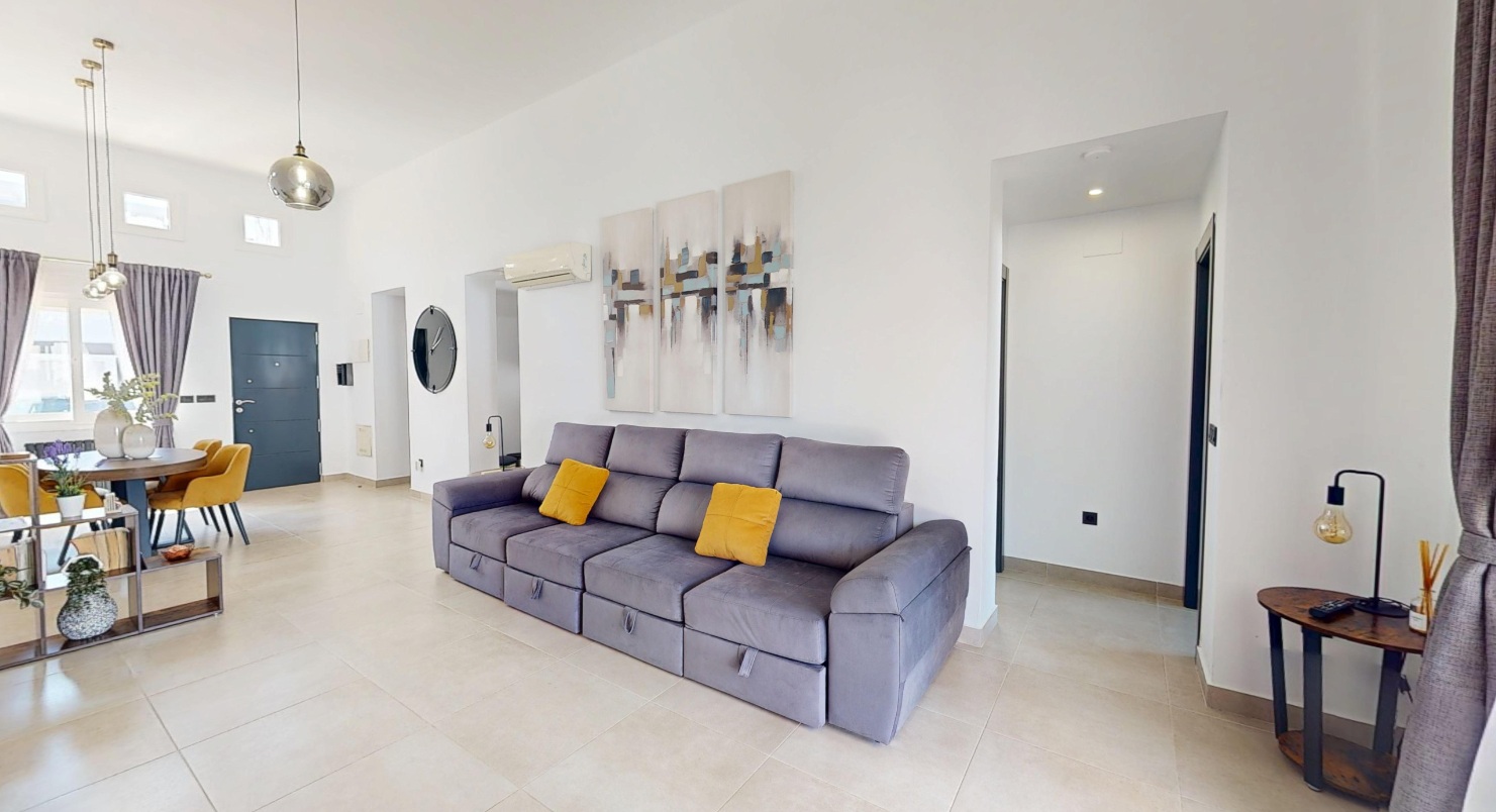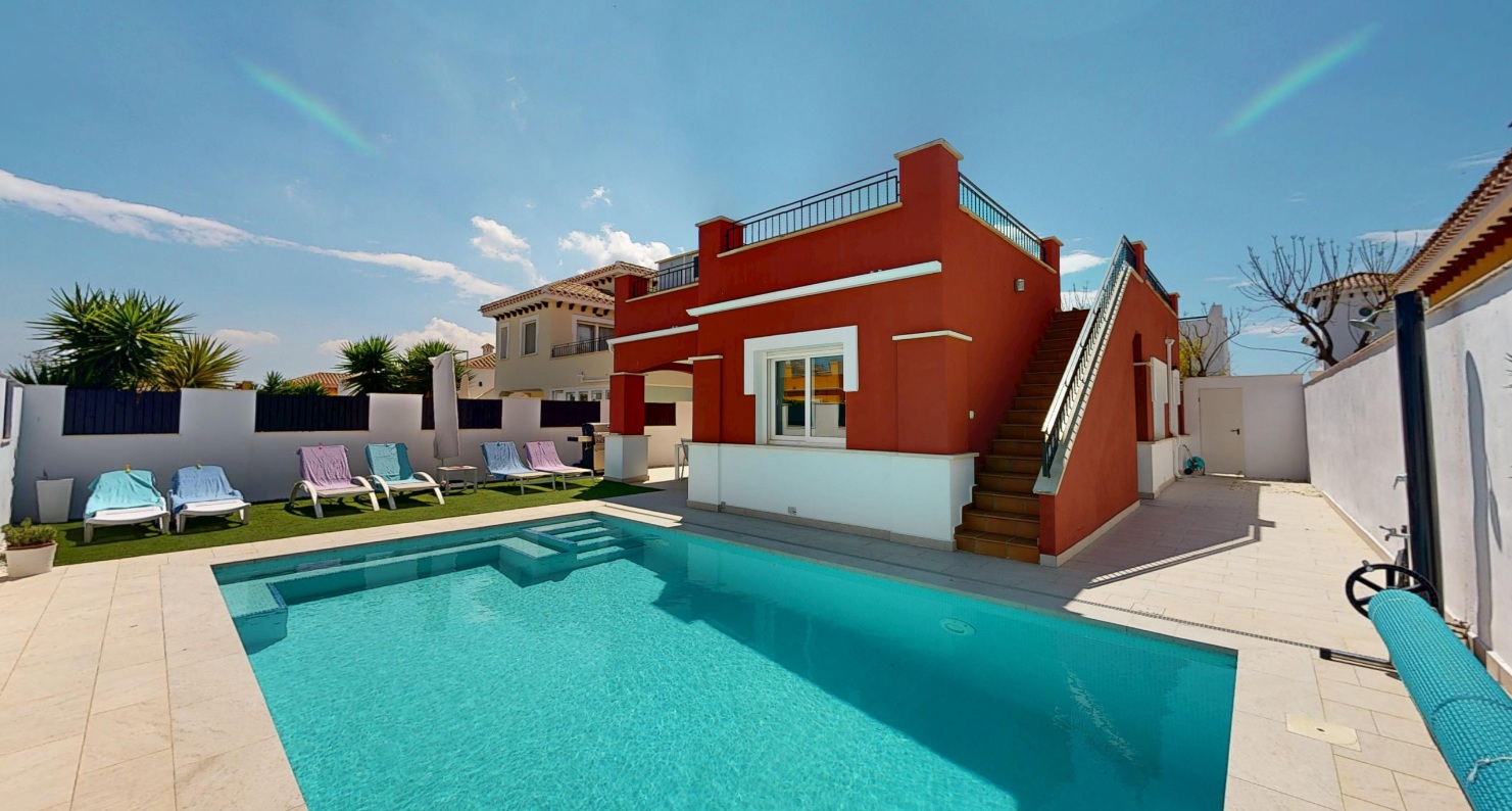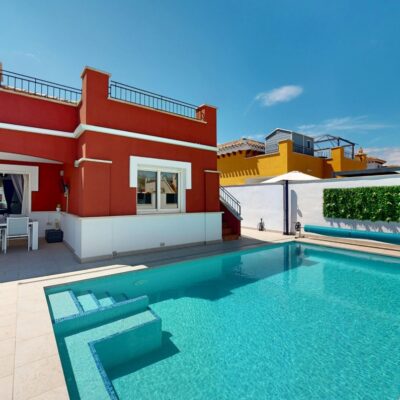 WOW – What a beautiful property this is! We are pleased to exclusively market this stunning three bedroom, two bathroom Carmoli villa with private pool located in an enviable position on the Mar Menor Golf Resort just a short walk to supermarket and facilities. Mar Menor Golf is just 5 km from the coast and the old town of Los Alcazares and has a bus stop.