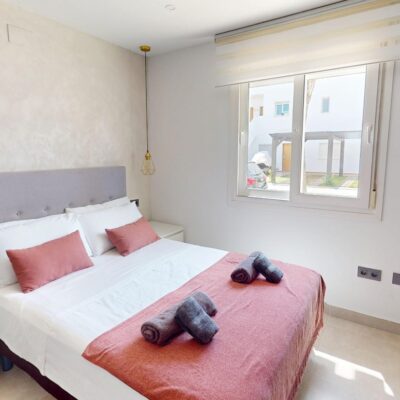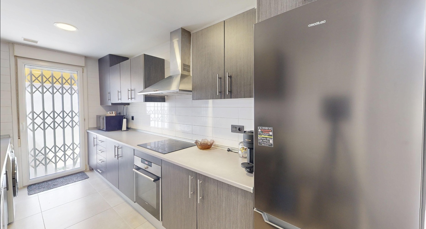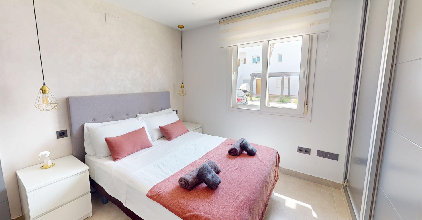 Inside there is a fitted kitchen with a door that leads to the garden, three double bedrooms with fitted wardrobes, a family bathroom and the master bedroom has an en-suite bathroom. Both bathrooms have been tastefully upgraded and have windows. This property has also got upgraded wardrobe doors, internal doors, radiators and light switches. The property comes furnished and with air conditioning in the bedrooms and lounge. The community fees are low and you also get access to the community swimming pools.