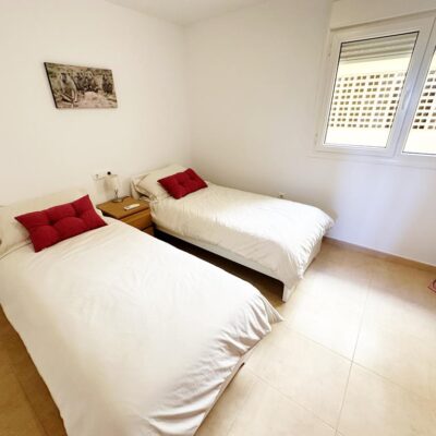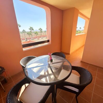 We are pleased to offer this fantastic second floor three bedroom two bathroom apartment on the Boulevard just outside Mar Menor Golf Resort. The property is south facing, has two spacious terraces, comes with allocated underground parking, furnished and full aircon. This is a really spacious apartment and is walking distance to an array of bars and restaurants. On the Mar Menor Resort you have a supermarket and the MMGR club with pool, padel courts and restaurant. The Mar Menor beach town of Los Alcazares is a short drive away, Murcia airport 25 minutes and Alicante an hour.