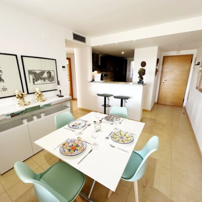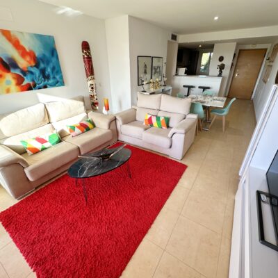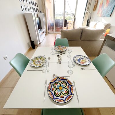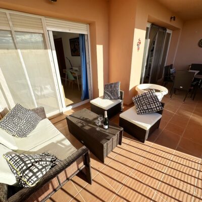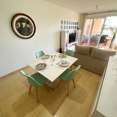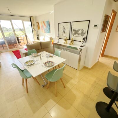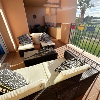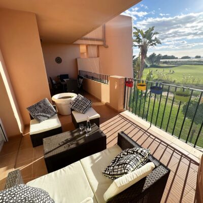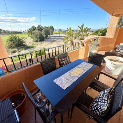 We are delighted to offer this two bedroom two bathroom west facing melvin apartment for sale on the Mar Menor Golf Resort.  The apartment is situated just a short walk to the onsite supermarket and MMGR club with restaurant, mini golf, gym and padel courts.  Just outside the resorts you have a variety of restaurants on the Boulevard.  The apartment enjoys golf views and is being sold furnished with integral hot and cold aircon and allocated underground parking with lift access to the property.  Murcia airport is a 20 minutes drive and Alicante approximately 1 hour.  The wonderful Roman town of Cartagena is a short drive away along with the gorgeous beaches of La Manga.