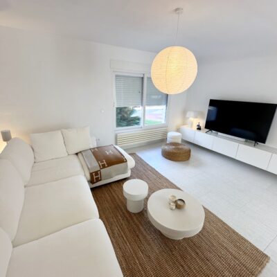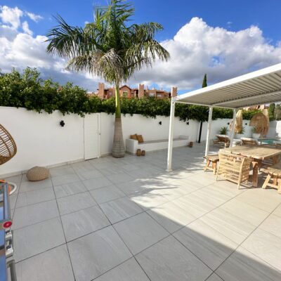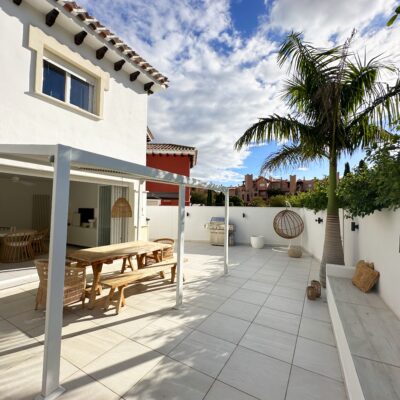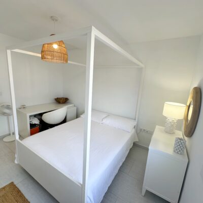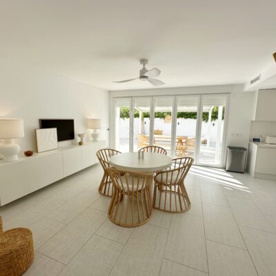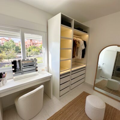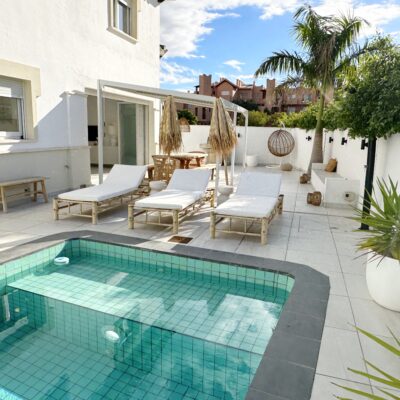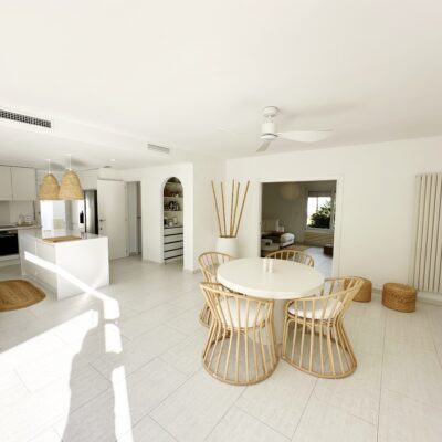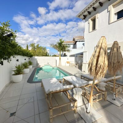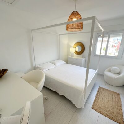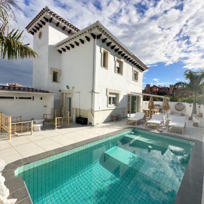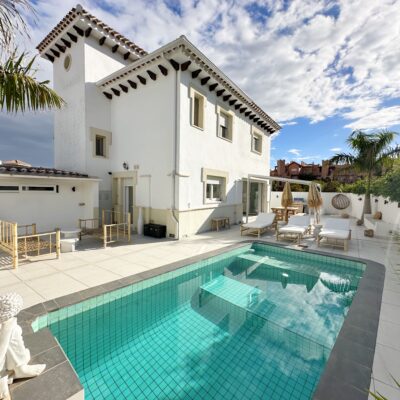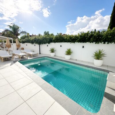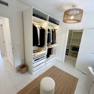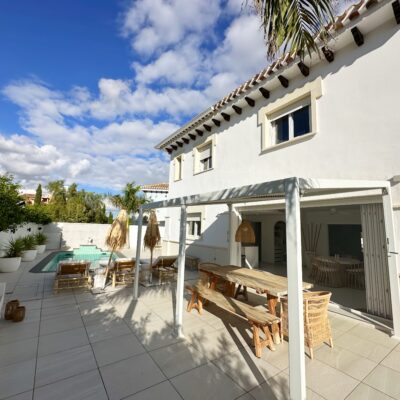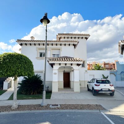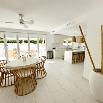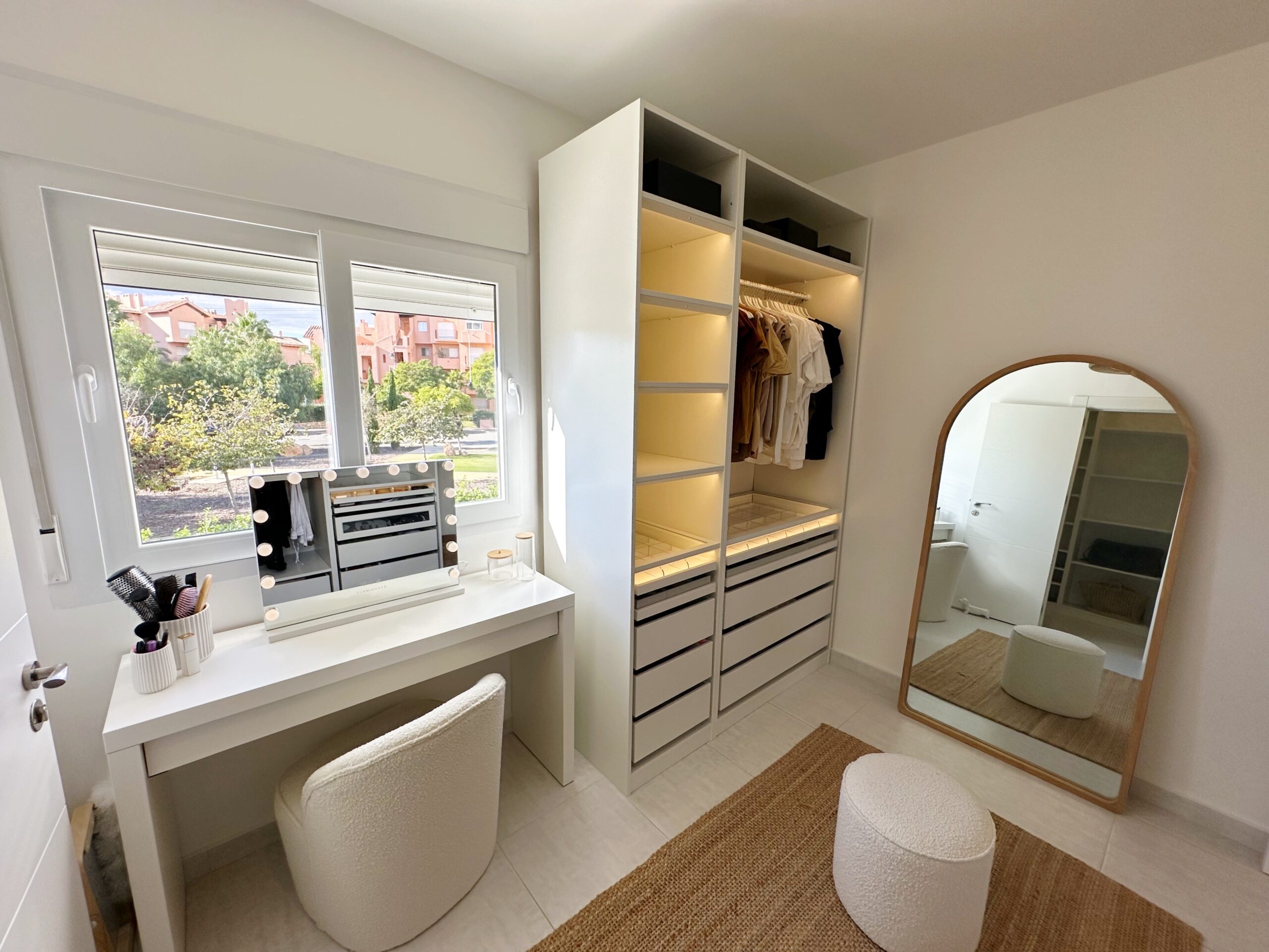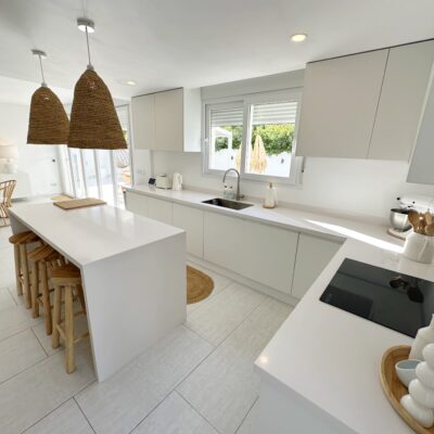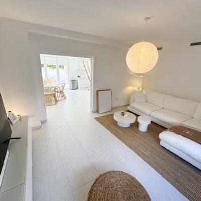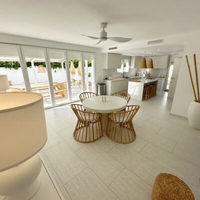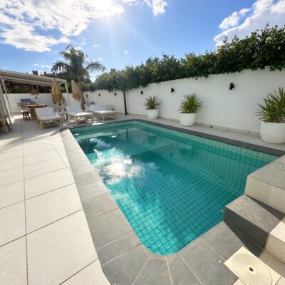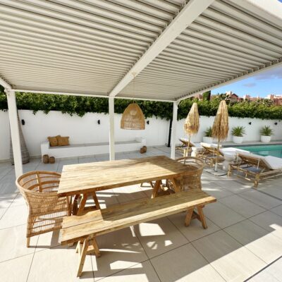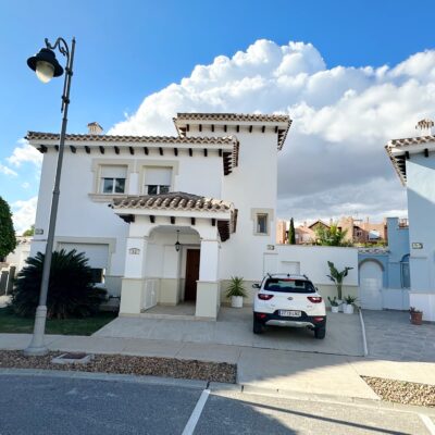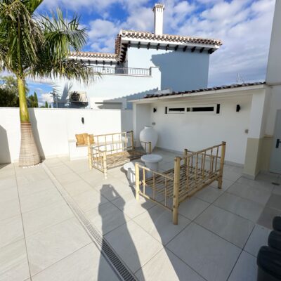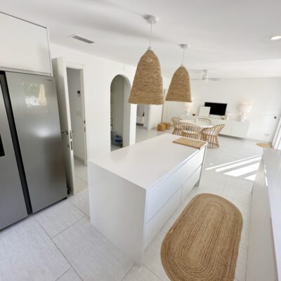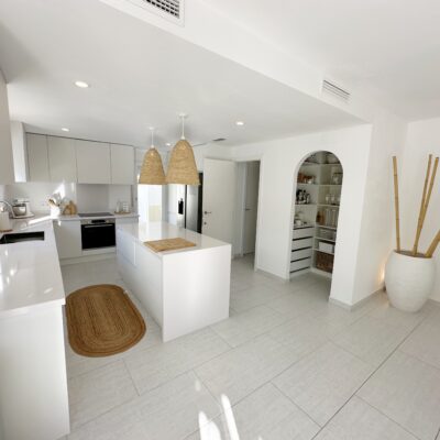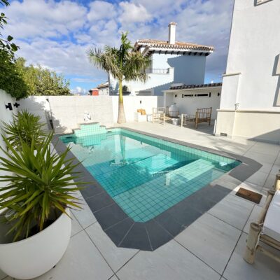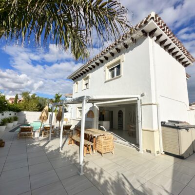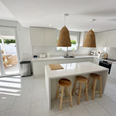 We are thrilled to offer this stunning fully renovated Baron villa for sale on the Mar Menor Golf Resort. It truly is one of a kind, it is gorgeous. The villa enjoys a South-West orientation from the secluded garden which houses a private pool. The owners have completely renovated the downstairs space creating an open plan space with bespoke kitchen, pantry, calming lounge area and sunny dining area with bifold patio doors bringing the outdoors in. An additional bedroom has been added upstairs which has been transformed into every woman’s dream – a large dressing room and walk in wardrobe. The property has solar panels, gas central heating and full aircon throughout and is being sold part furnished. The villa is in a great location on the resort – a short walk from the onsite supermarket and MMGR club with mini golf, padel, gym and restaurant. The Mar Menor beach town of Los Alcazares is a short drive, Murcia airport is 20 minutes away and Alicante is roughly an hours drive.