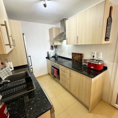 The property is accessed via a security lift to the second floor. You enter in to the sunny open plan lounge diner with kitchen to the left. The owners have updated the kitchen with new work tops, oven, hob and sink and enclosed the separate utility room. The sunny lounge diner has access to a fantastic terrace where the owners have added glass curtains creating a wonderful year round use space. The curtains can be opened up in the summer. Here you can enjoy views over the countryside. There are three double bedrooms all with fitted wardrobes. The master has an ensuite shower room and access to the terrace. You will also find a separate guest bathroom. The owners have added a door from the lounge to the bedrooms giving more privacy and warmth. This is a very well maintained and beautifully presented apartment with high quality furnishings. Please contact us to book a viewing appointment.