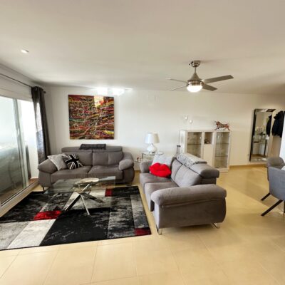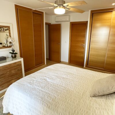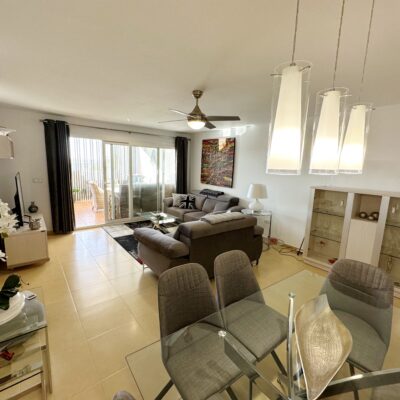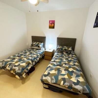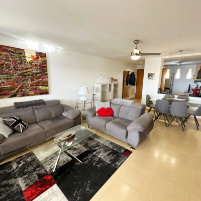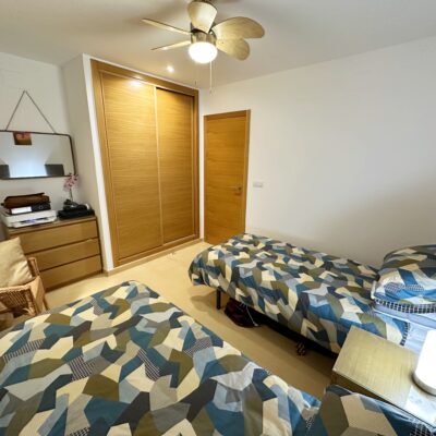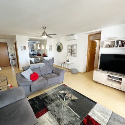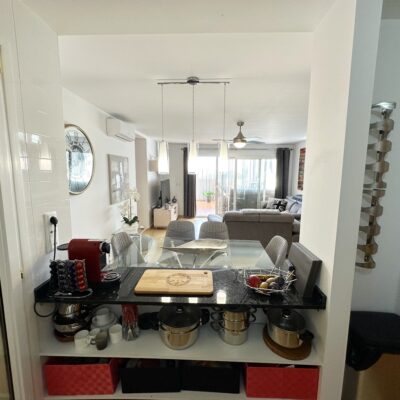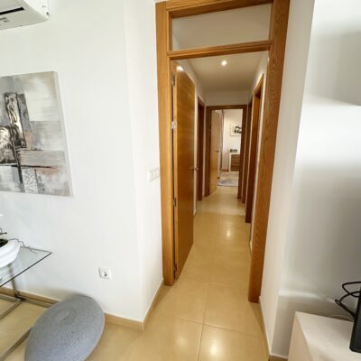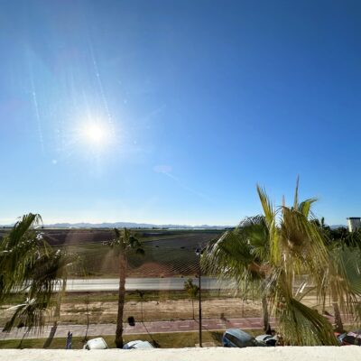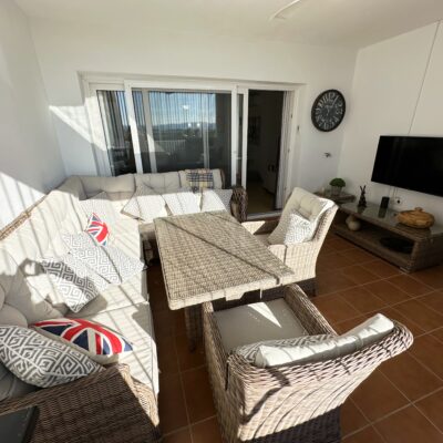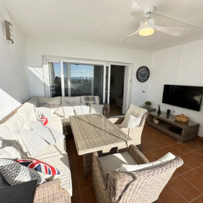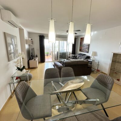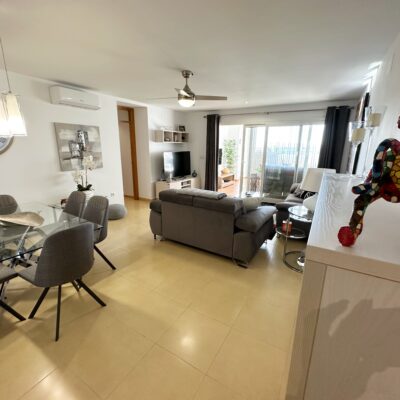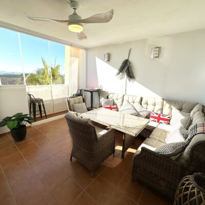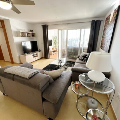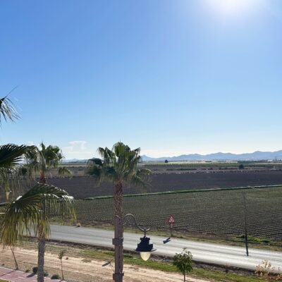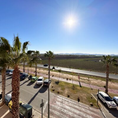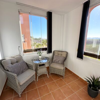 We are thrilled to offer this splendid three bedroom south facing apartment on La Goleta just outside Mar Menor Golf Resort. The apartment is in a prime location close to the bars and restaurants on the Boulevard and a 5 minutes walk to the resorts supermarket and MMGR club with padel, gym, mini golf and restaurant. The apartment features several upgrades including glass curtains on the terrace and a walk in shower in the ensuite to the master bedroom. The property is being sold furnished and has aircon in the lounge and two of the bedrooms and mosquito blinds on all doors.