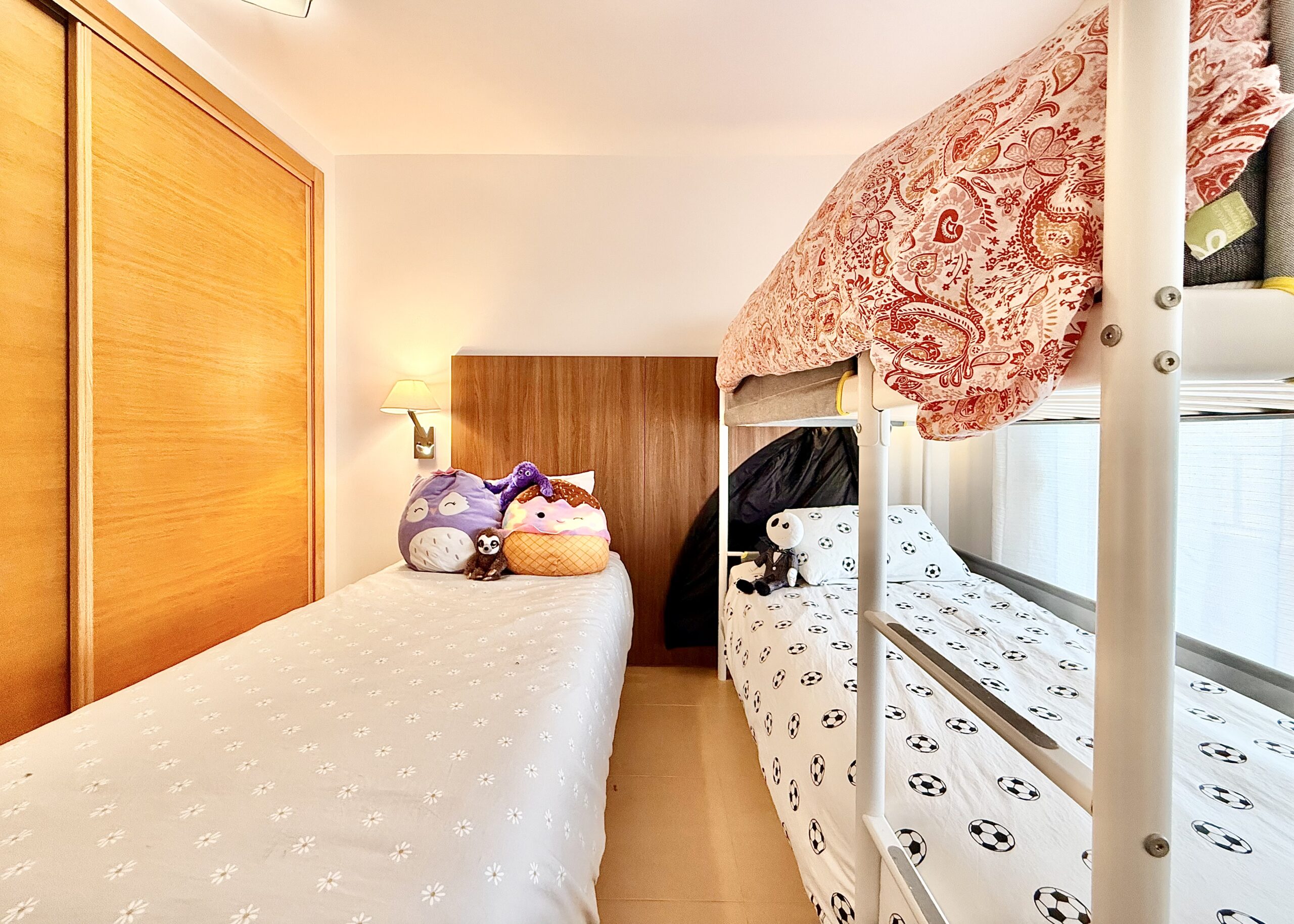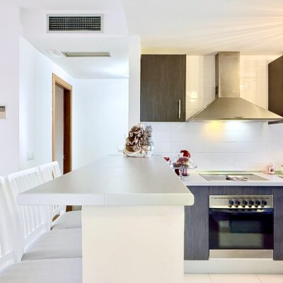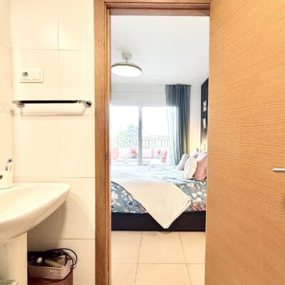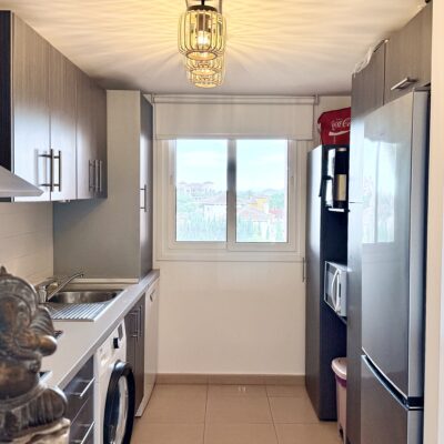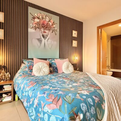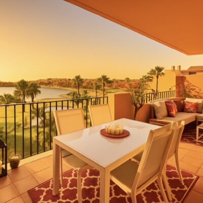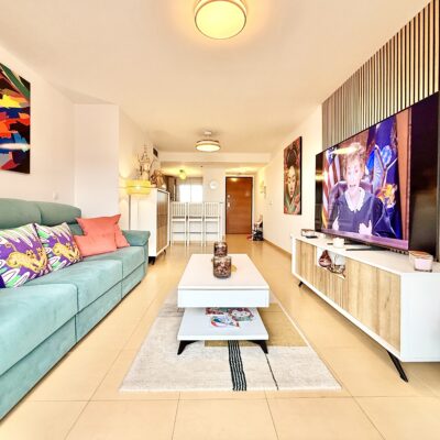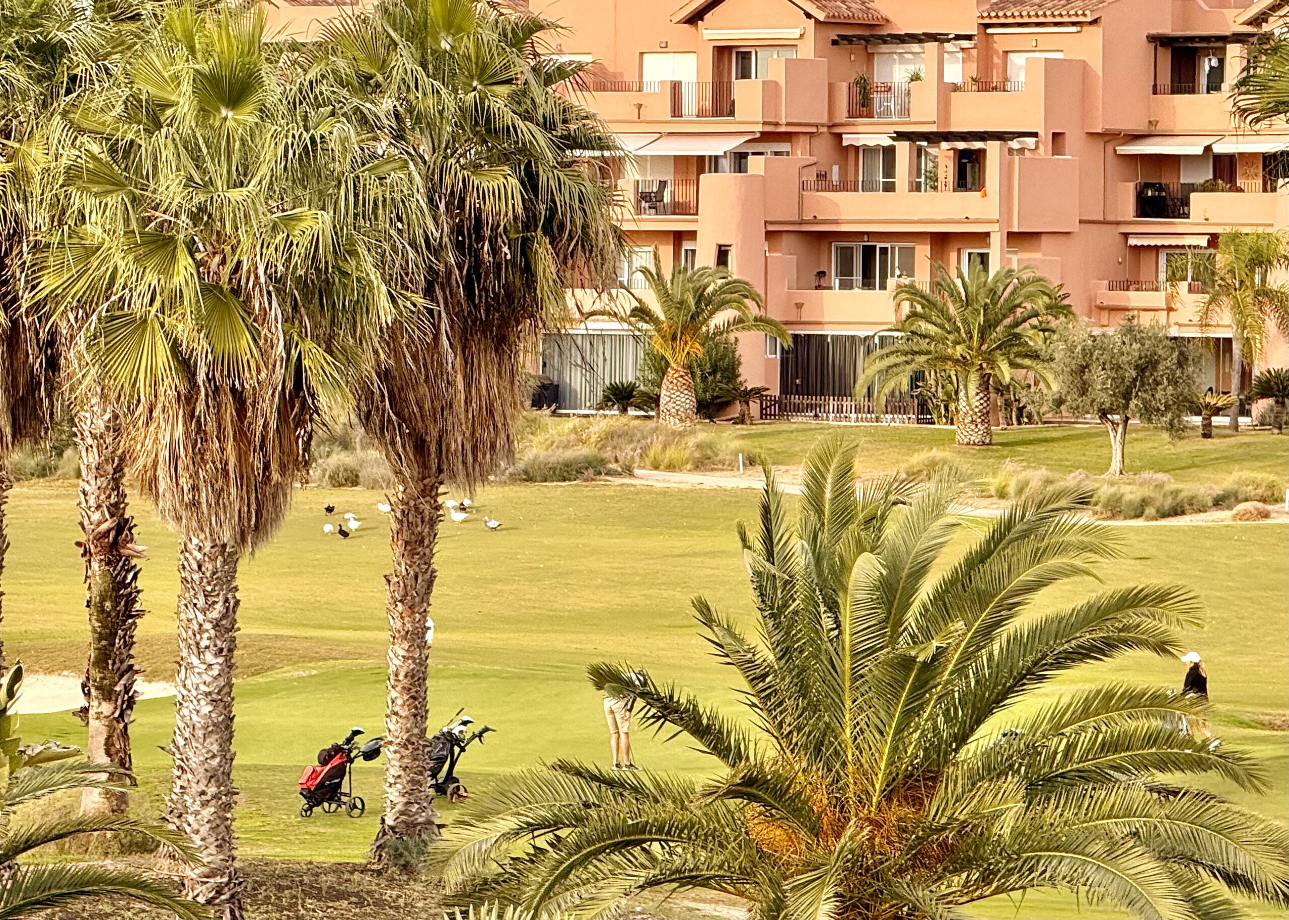 We are thrilled to offer this contemporary two bedroom two bathroom west facing apartment for sale on the Mar Menor Golf Resort.  The terrace enjoys wonderful views over one of the resorts communal pools and lake.  It is being sold furnished with recently installed hot and cold aircon and ceiling fans throughout. It comes with allocated underground parking with lift access to the second floor. The property is a short walk to the Ona Hotel and clubhouse.  There is an onsite supermarket, the MMGR club with padel, gym, mini golf and restaurant and just outside the resort the Boulevard with a variety of bars and restaurants. Murcia airport is a 20 minutes drive and Alicante an hour.