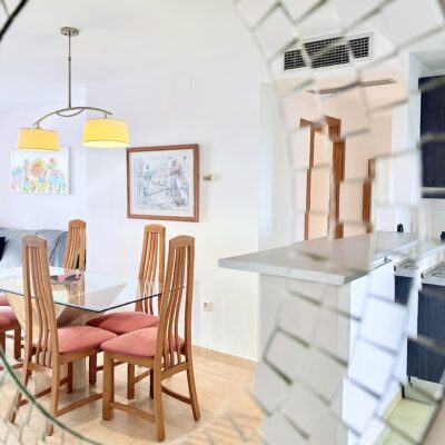 The apartment benefits from wonderful views across the pool area, Nicklaus Design golf course and lake from the sunny 29 sq’m terrace. Offered for sale at a great price whi9ch includes the furniture, the apartment has a spacious open plan living room with a fully equipped kitchen. Sliding doors open the living room to the sunny terrace. There is a master bedroom with en suite bathroom, a second double bedrooms and family shower room.