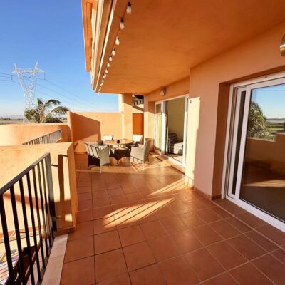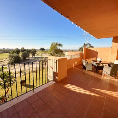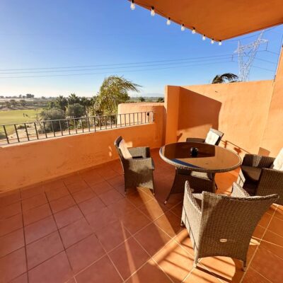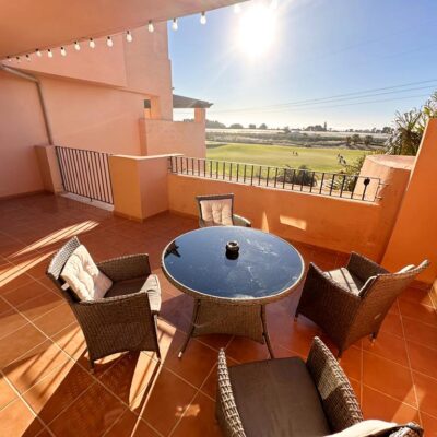 We are thrilled to offer this two bedroom two bathroom second floor south west facing Melvin apartment for sale on the beautiful Mar Menor Golf Resort.  The apartment is in a great location with golf views and a short walk to one of the communal swimming pools.  The onsite supermarket and MMGR club with restaurant, padel and mini golf a 5 minutes walk.  You have the onsite 5 star Ona Hotel, clubhouse and a variety of restaurants on the Boulevard just outside the resort. The mar menor beach town of Los Alcazares is a short drive away, Murcia airport 20 minutes and Alicante an hour.  The property has had recently updated aircon and is being sold furnished.  It comes with secure allocated underground parking with lift access to the property on the second floor.
