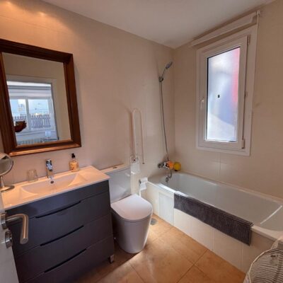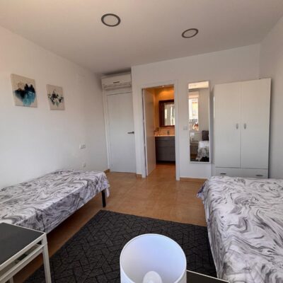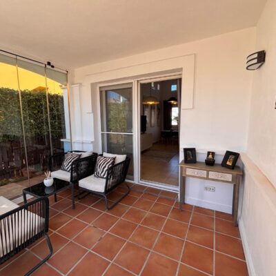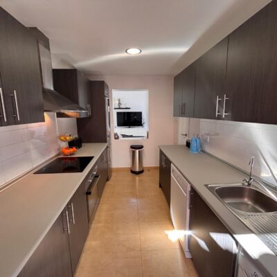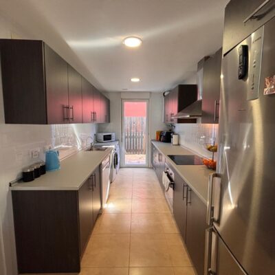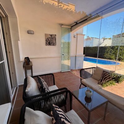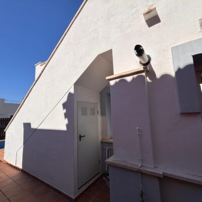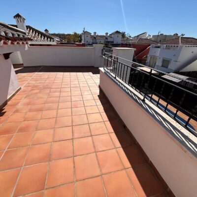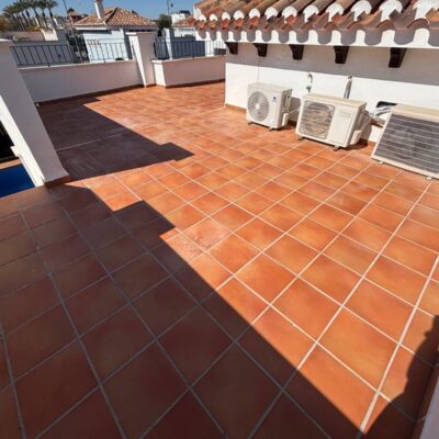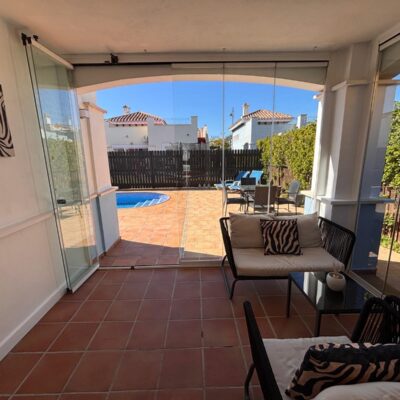 This is a detached villa of the desirable Rondella style, which is a single storey villa with a 36m solarium sun terrace above. The Rondella villa has a spacious living room leading to a covered rear terrace which has been enclosed with folding glass curtains, making it a useable space all year round. There is a large modern galley style fitted kitchen with appliances included.