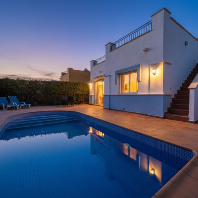 The villa has two double bedrooms with fitted wardrobes, two bathrooms and a driveway providing off road parking to the front. The garden faces West so gets sun all afternoon and lovely sunsets. There is a private swimming pool and sunbathing areas, along with a sunny solarium roof terrace. An ideal permanent or holiday home offered for sale at an excellent price. Contact us to arrange a viewing.