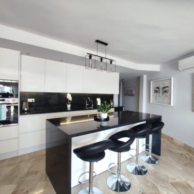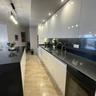 The property is accessed via a lift to the fourth floor. The property does not have parking but there is street parking or a public carpark at the marina. There are private parking spaces that can be purchased or rented. The apartment has an open plan layout with a beautiful modern hi spec kitchen with built in appliances and wine fridge, a large island and breakfast bar, and a sunny spacious lounge which leads onto the terrace where you can enjoy wonderful views over the marina and the mar menor, the sunrises will be gorgeous. There are three double bedrooms, the master has fitted wardrobes and an ensuite bathroom with bath and separate shower and a separate guest shower room. You will also find a separate storage / utility room. The property is being sold furnished and has hot and cold aircon throughout (separate units) and fly screens. This is a must see apartment. Contact us now to book your viewing appointment with one of our agents.